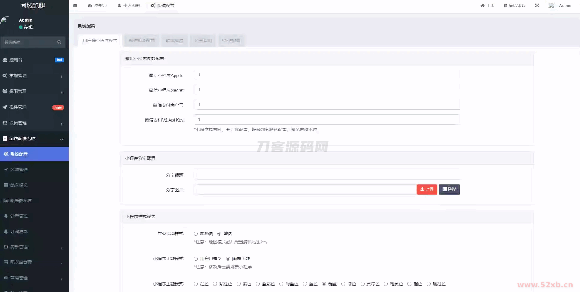 这是一款跑腿小程序,带有智能派单、系统派单、同城配送、校园跑腿、预约取件、用户端+骑手端