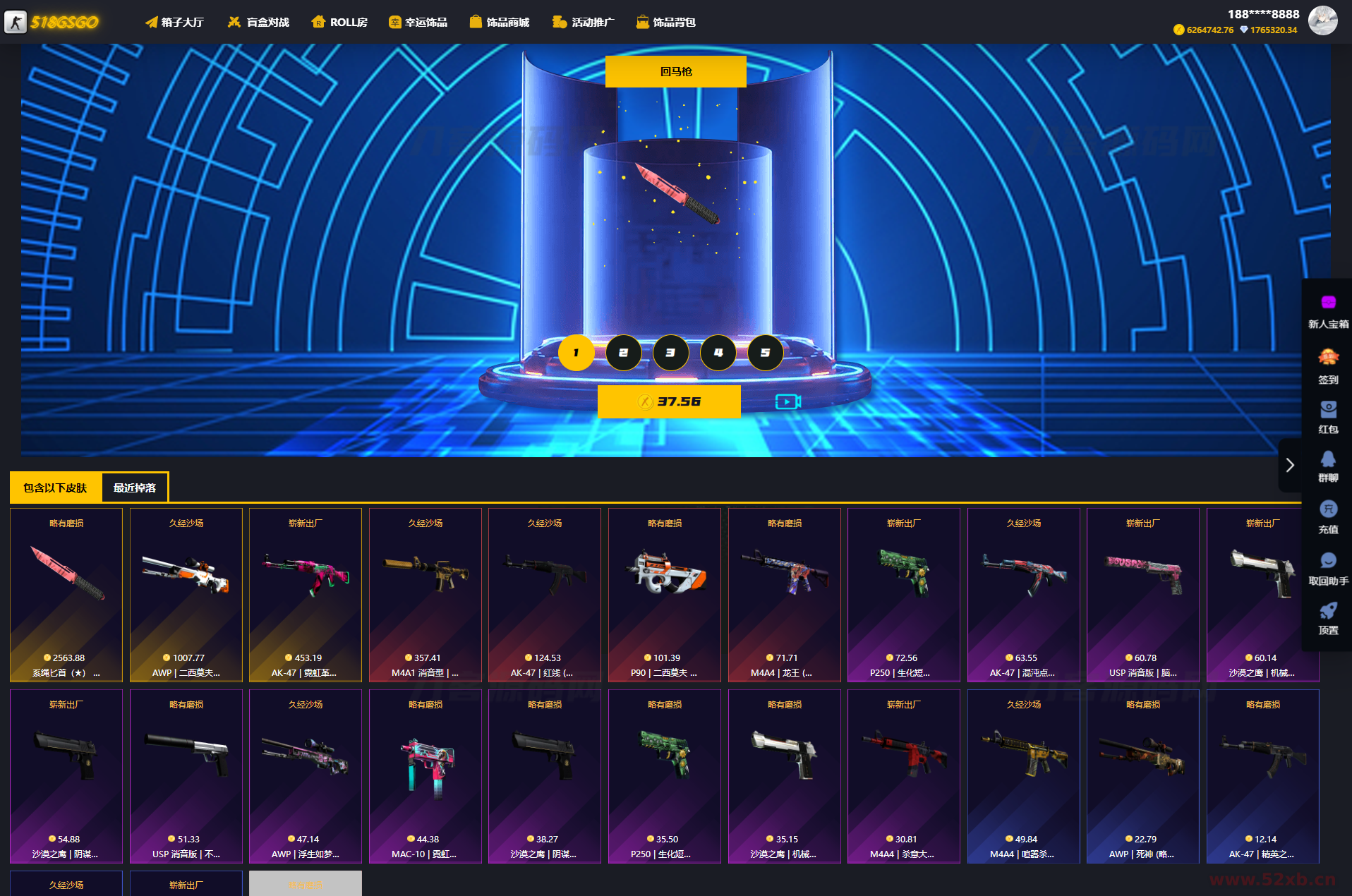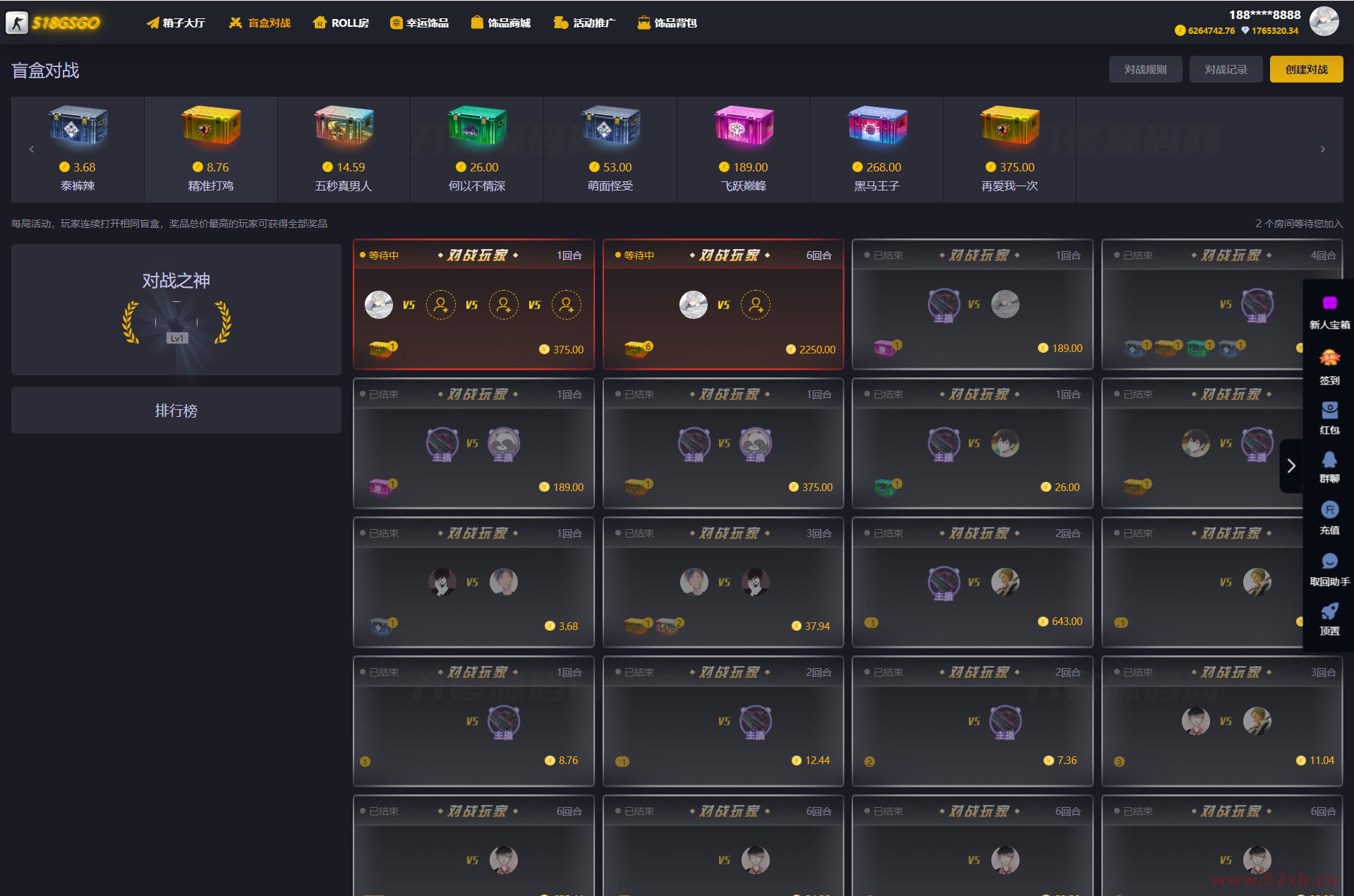 CSGO游戏盲盒开箱源码 盲盒对战、幸运开箱、积分商城、Fl盲盒