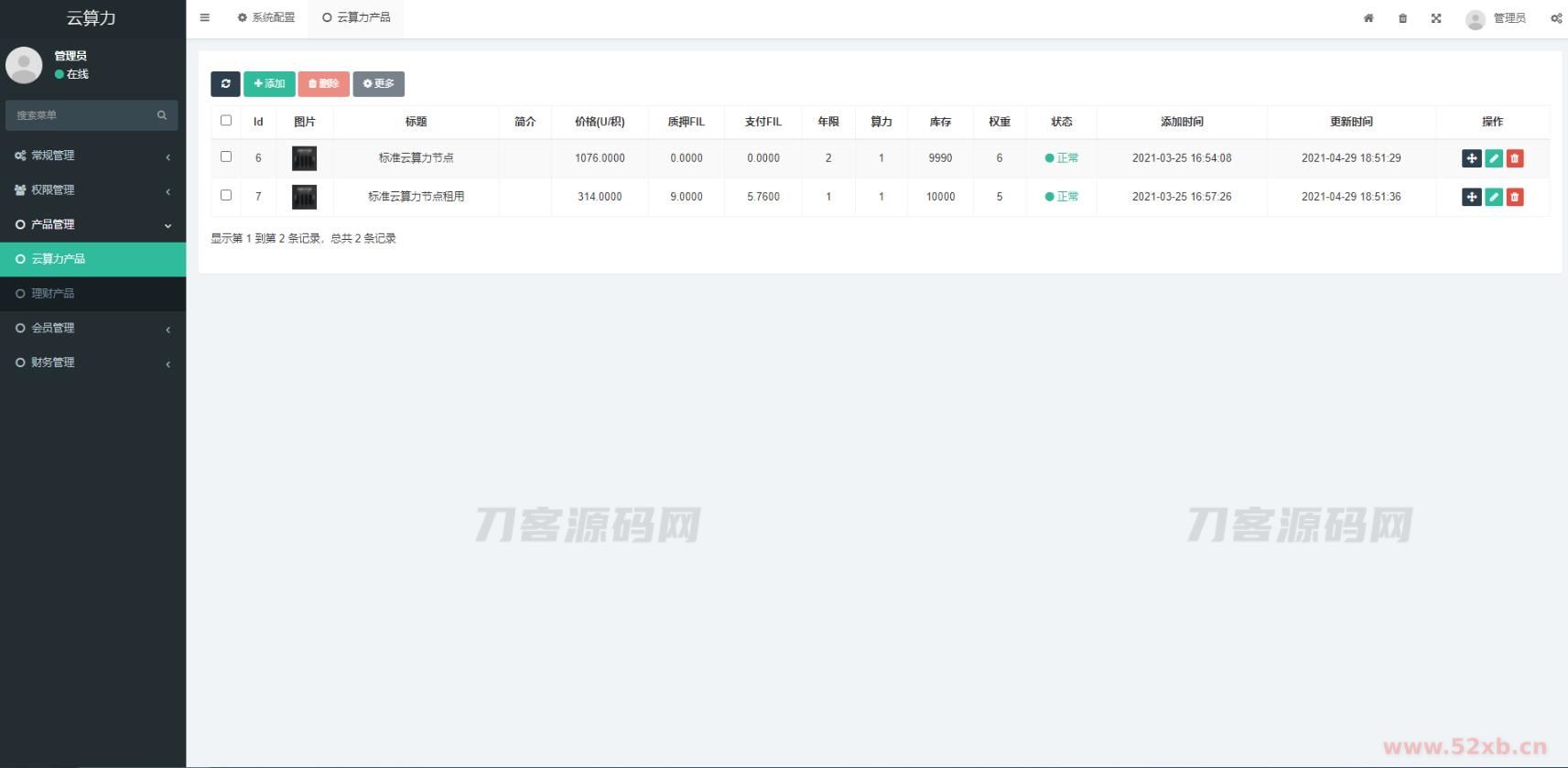 后台自行添加售卖矿机/云算力 参数和收益比率和详情说明