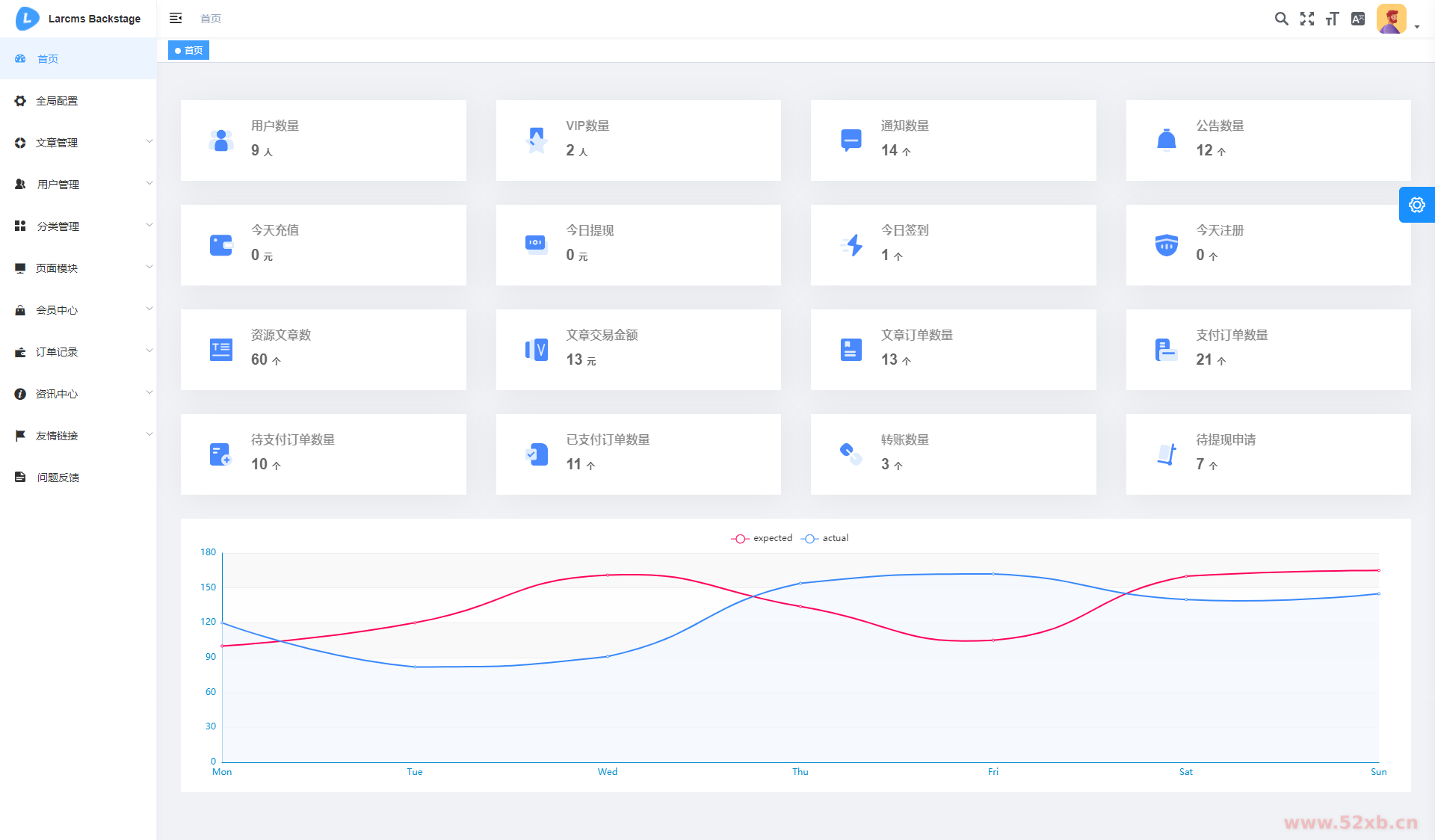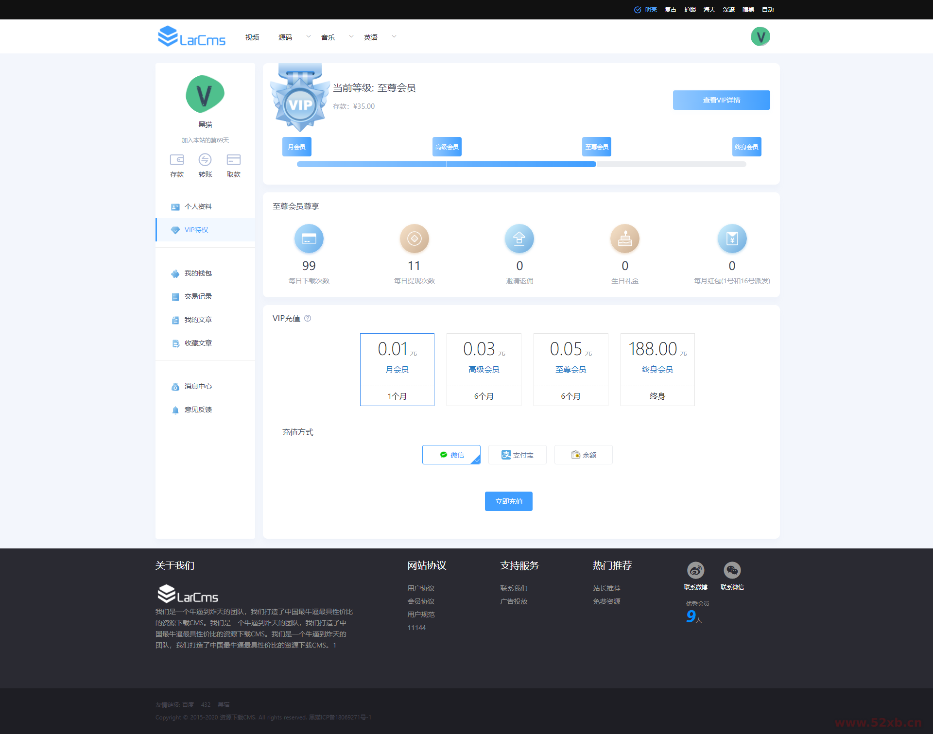 Larcms历经1年完善,使用NUXT2+Laravel8前端后端分离全部100%开源,采用会员制度下载付费,集成支付宝微信等支付系统。