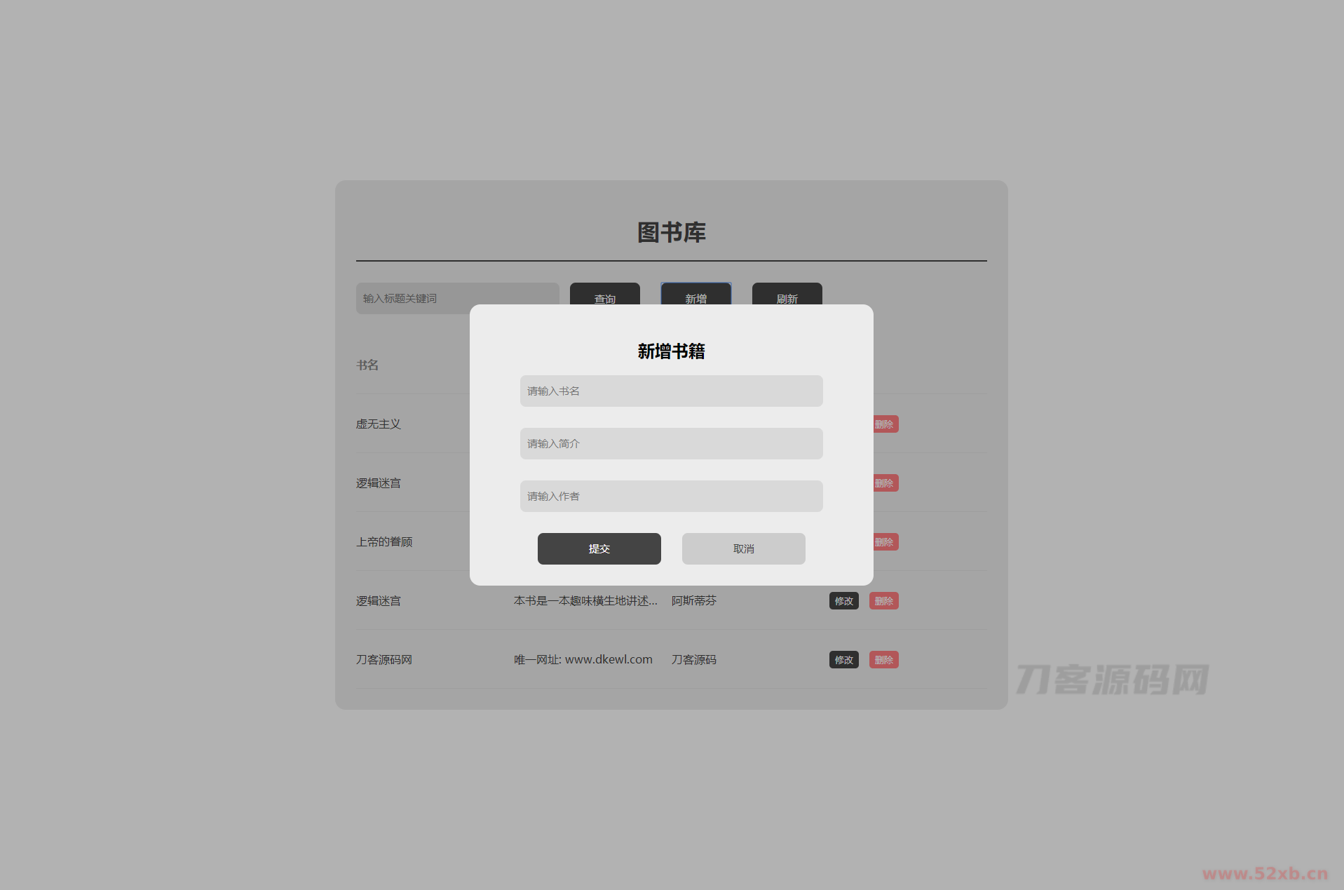 使用HTML,VUE,PHP,MYSQL写的一个简单图书库,实现了简单的数据库增删改查,以及数据列表的展示