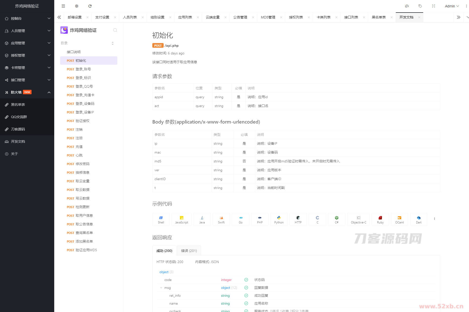 炸鸡网络验证系统基于Php+MySql数据库架构的网络验证系统,安全稳定、性能强悍、承载能力强,支持高并发、高承载、多线路,支持服务器集群架设,高性能设计,速度非常快,效率非常高。
