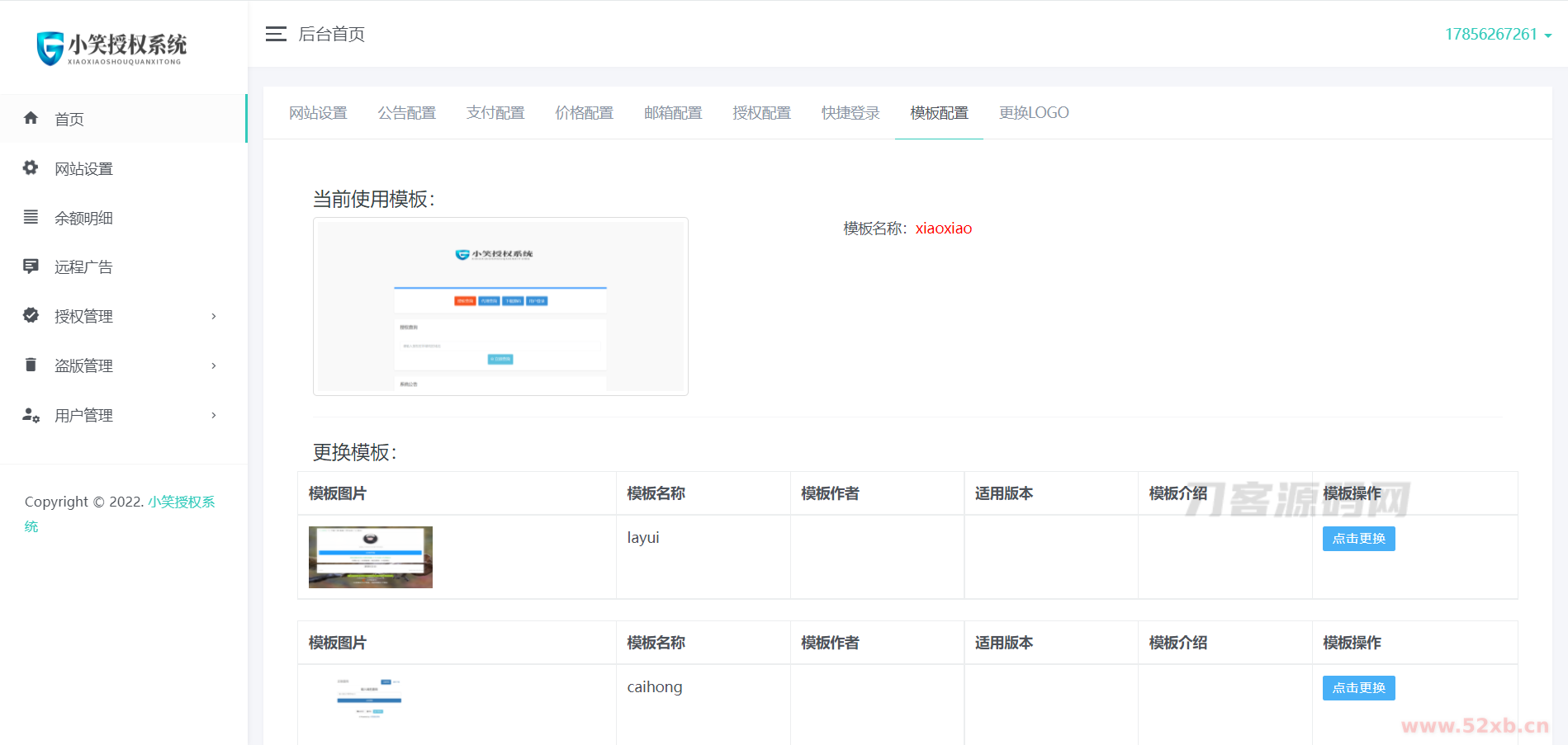 安装时授权码随意填写即可,更新了用户中心模板更换功能