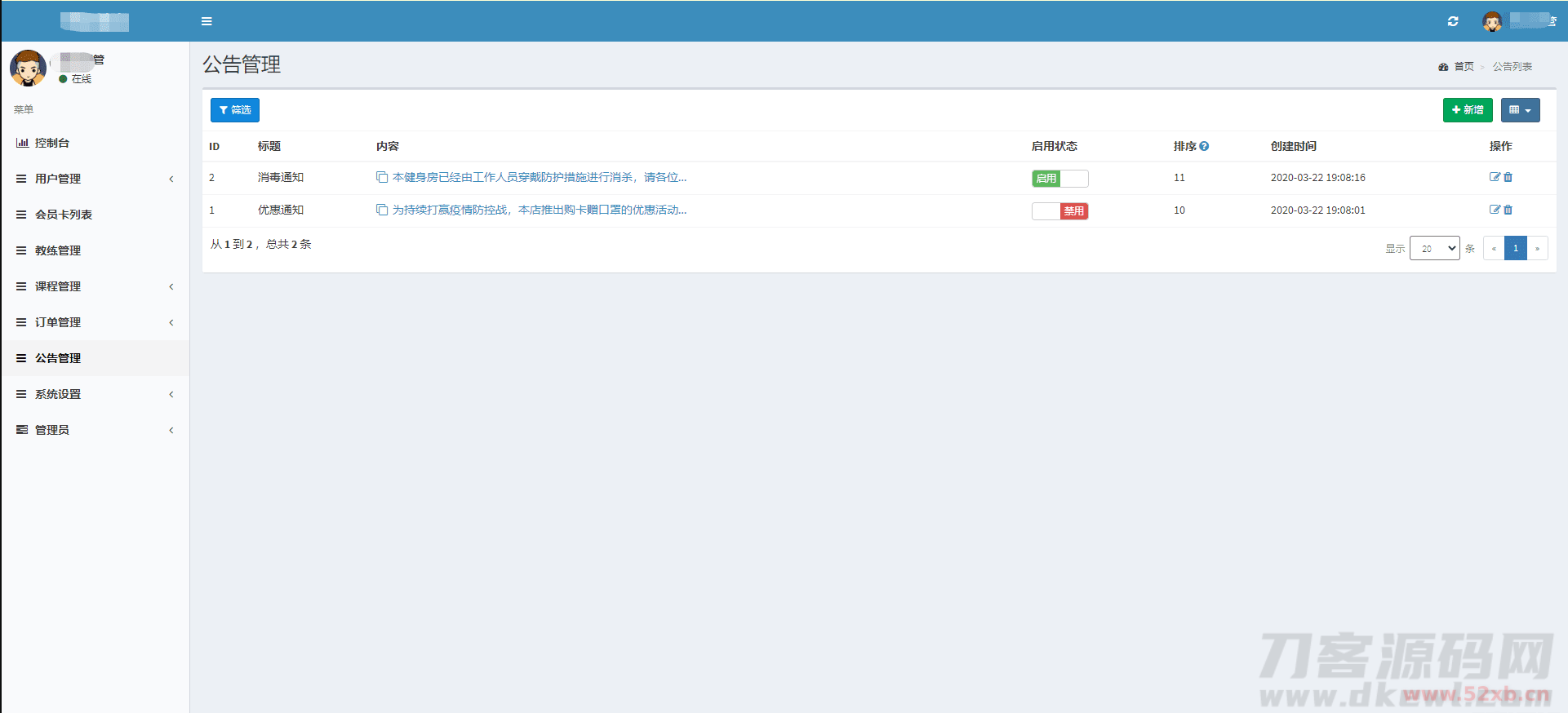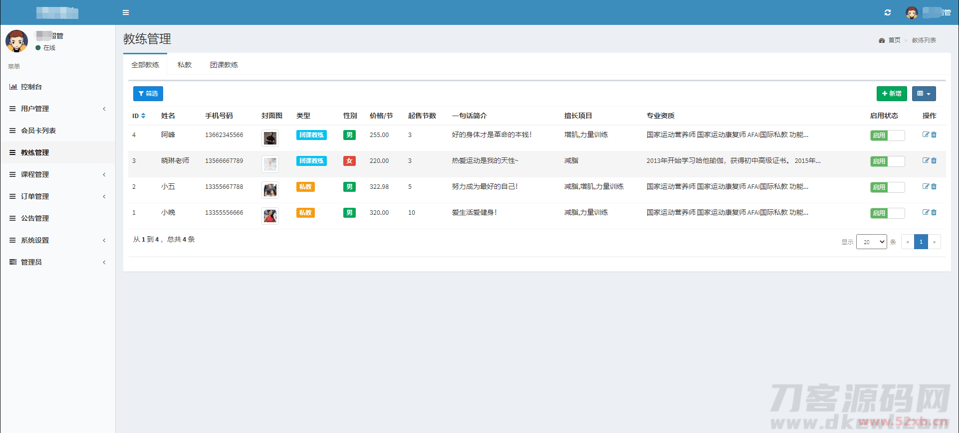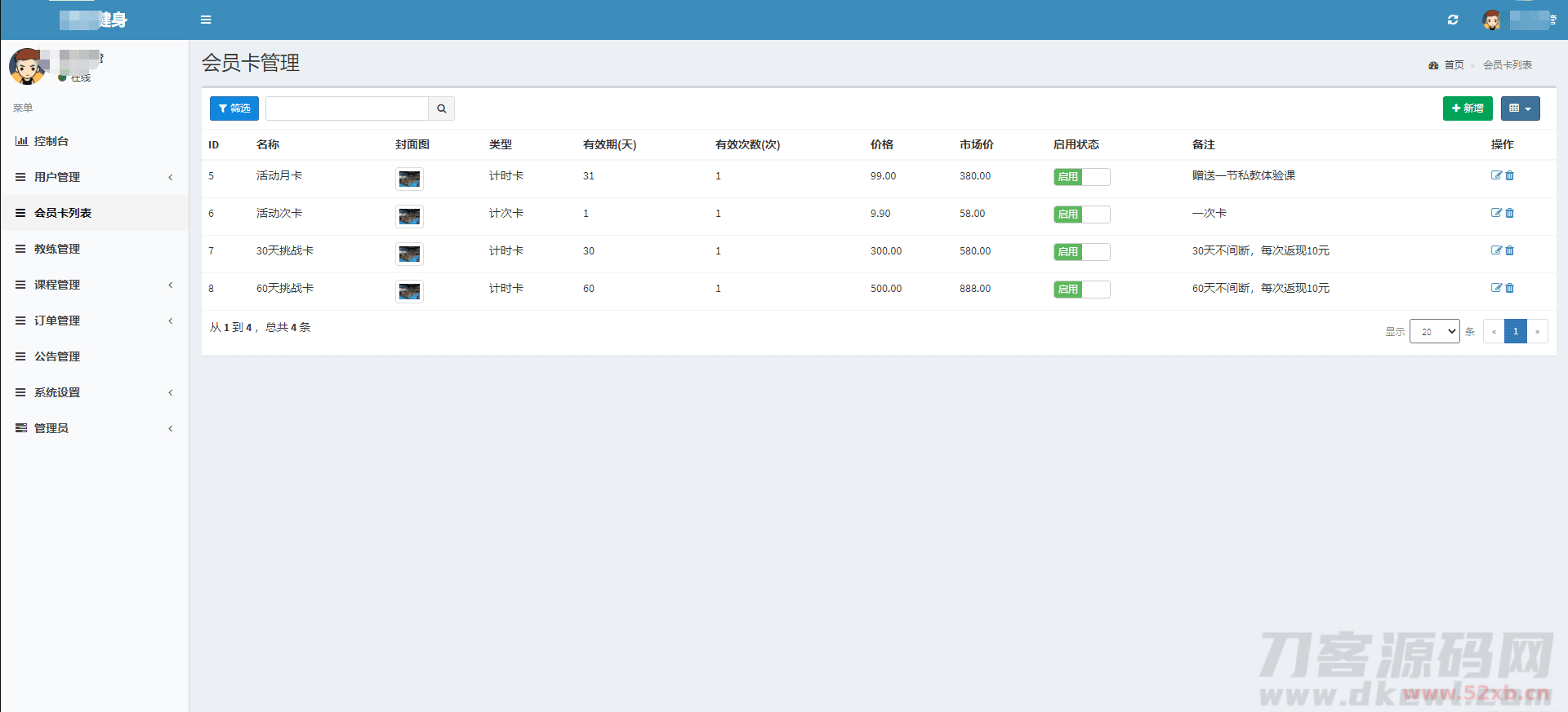 健身类小程序前后端源码