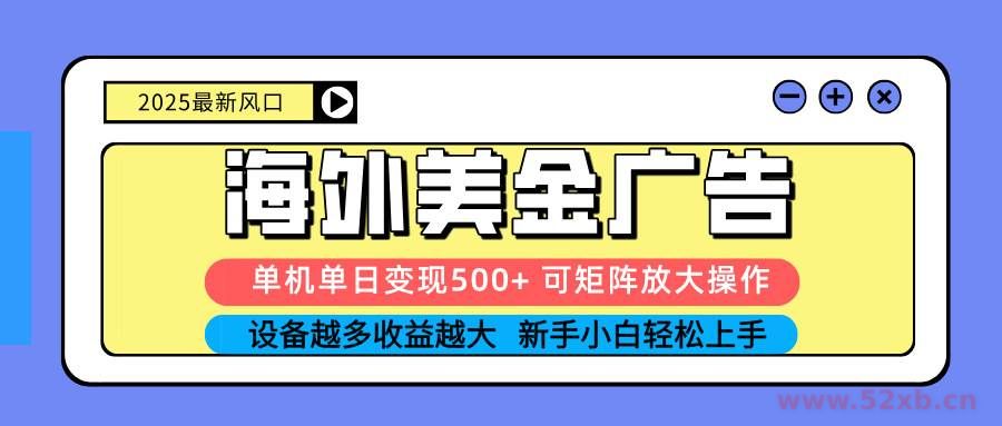 (16266期) 2025吃肉海外美金广告,单机单日变现500+,矩阵可无限放大,设备越多…