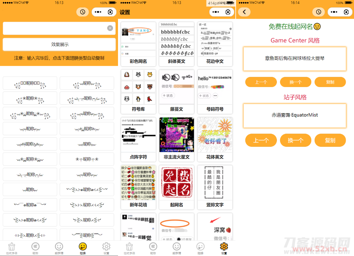 通过用户的自定义输入和选择,可以让用户生成各种字体,或者组合各种名字文案等等