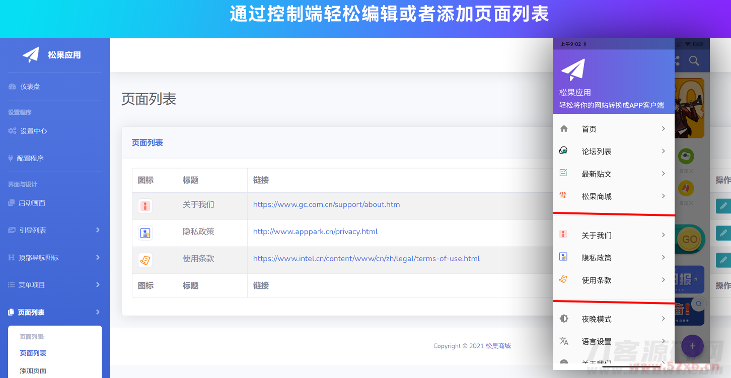 这是一款网站转换成APP的源代码,开发语言使用Flutter,开发工具使用的是AndroidStudio,你只需要在APP源代码里面填写你的域名,即可生成即可生成APP,包括安卓或者苹果,与此同时我们提供了APP的控制端.你可以通过控制端设置APP的颜色、添加APP的图标、添加APP的菜单栏目。