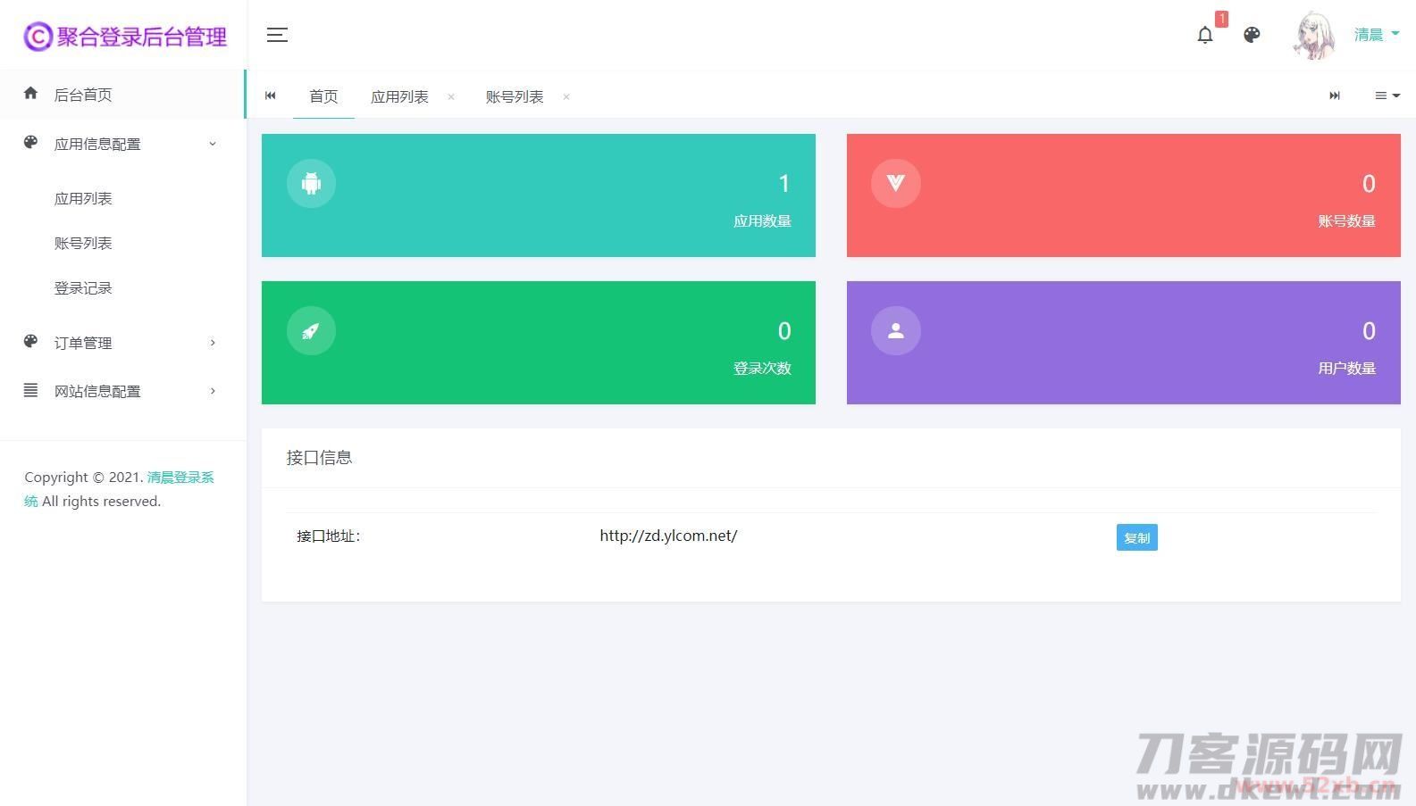 安装好进入后台【后台账号admin,密码123456】以后去对接云端