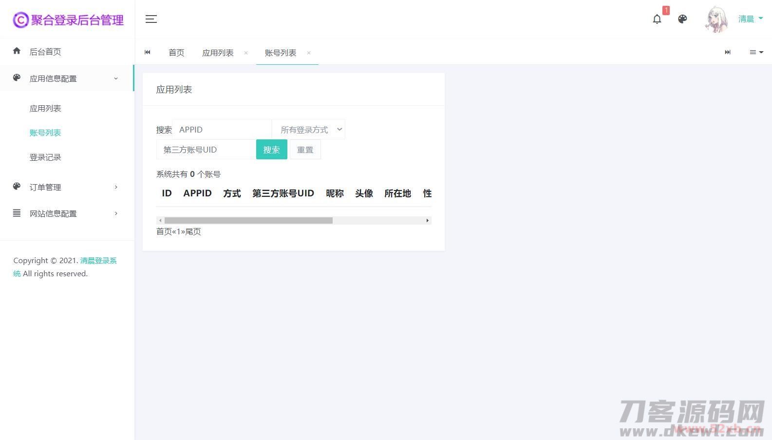 后台账号admin,密码123456