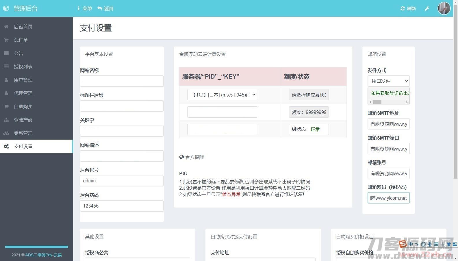 接下来去支付设置里面配置你的邮箱,等下下载更新包需要用到