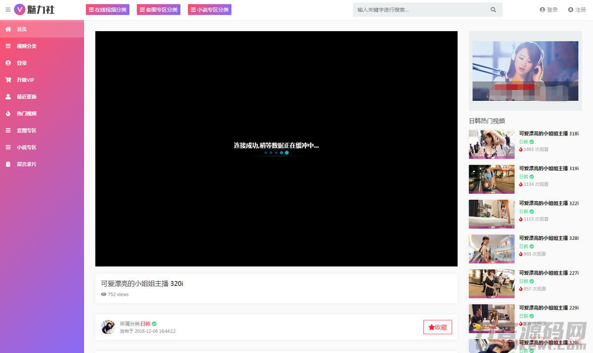 【苹果CMS V10模板】魅力社YMYS007主题RX03主题模板粉色魅力美女视频CMS系统源码