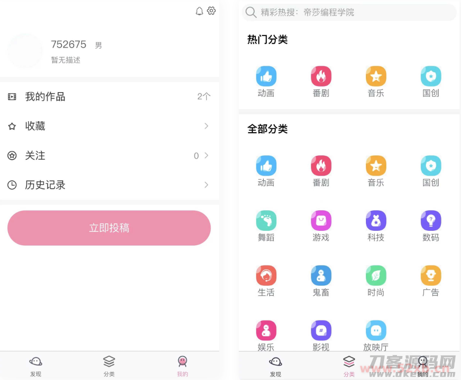 前台用户直接发布视屏。录播视屏