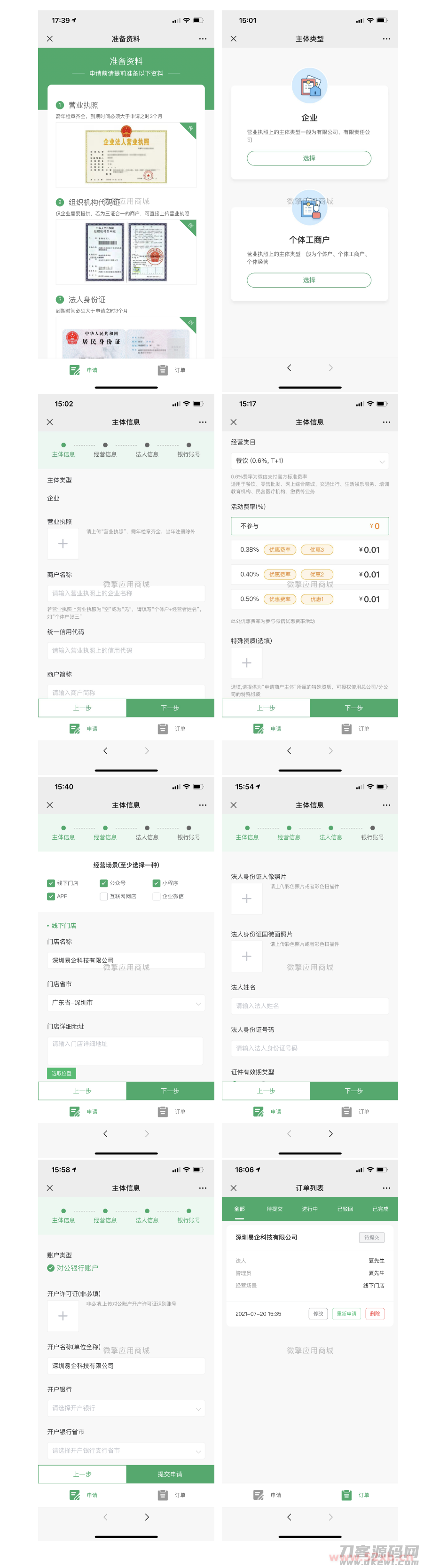 主要解决服务商只能在微信服务商后台手工提交商户资料,无法在手机端提交,节约时间同时避免商户对敏感证件的隐私顾虑。