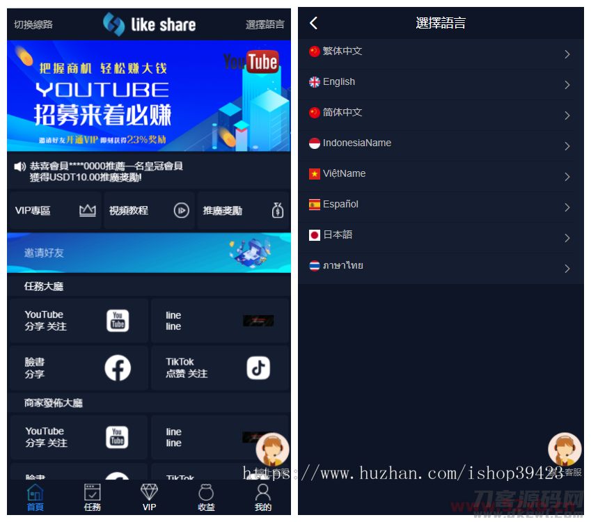 首页可领取脸书TikTok等点赞关注任务!