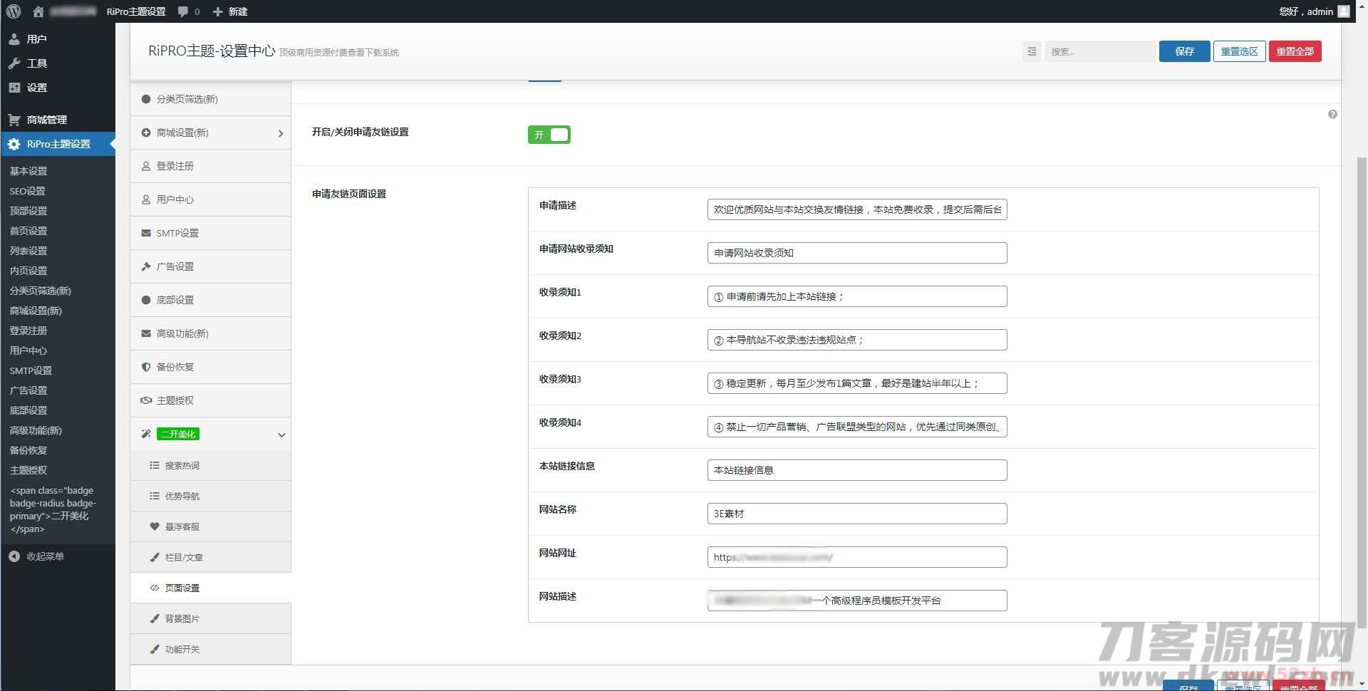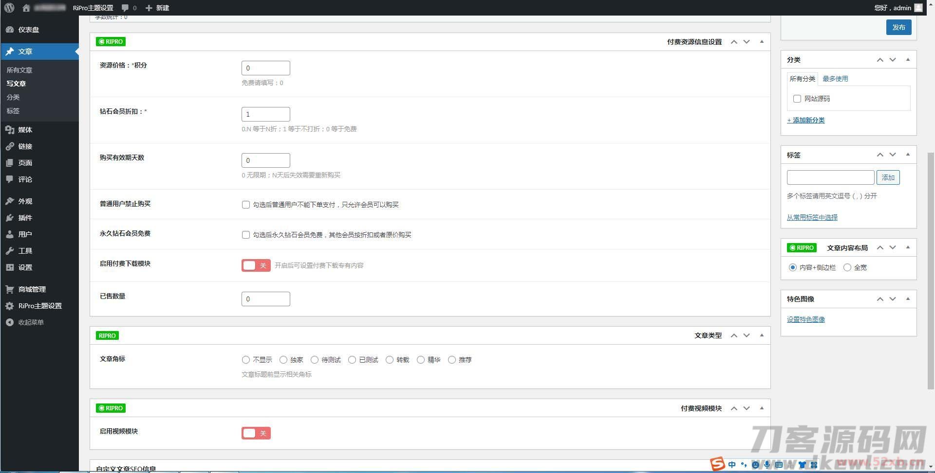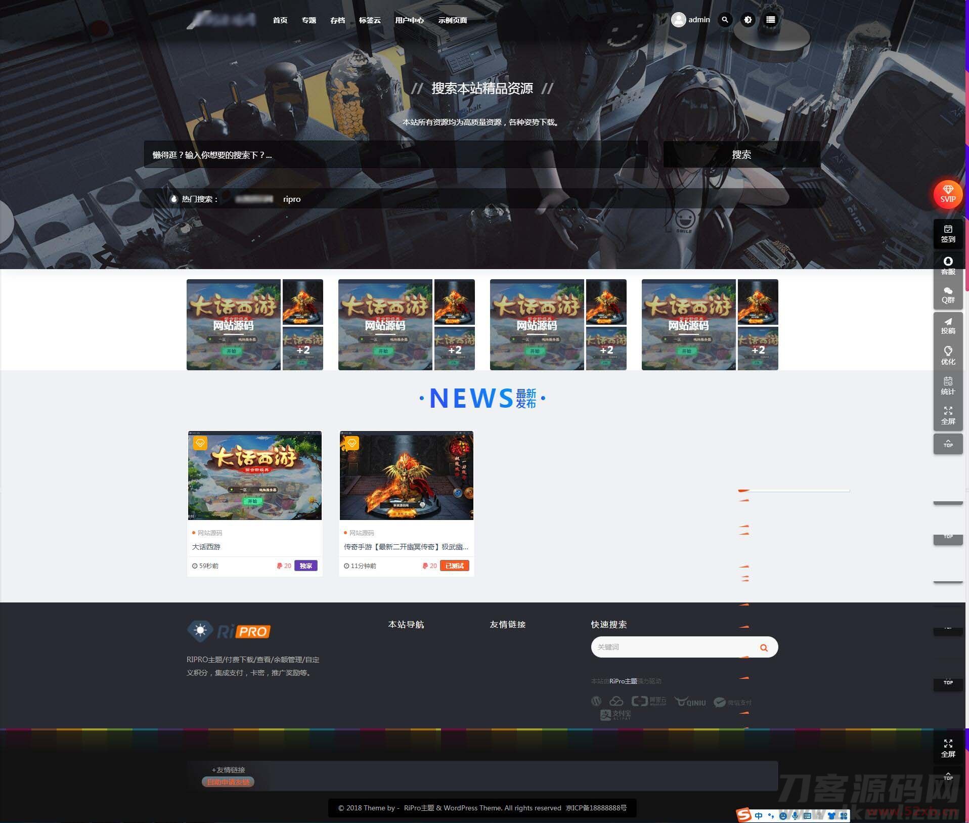 注意:使用该子主题前需要安装WordPress程序和RiPro模板