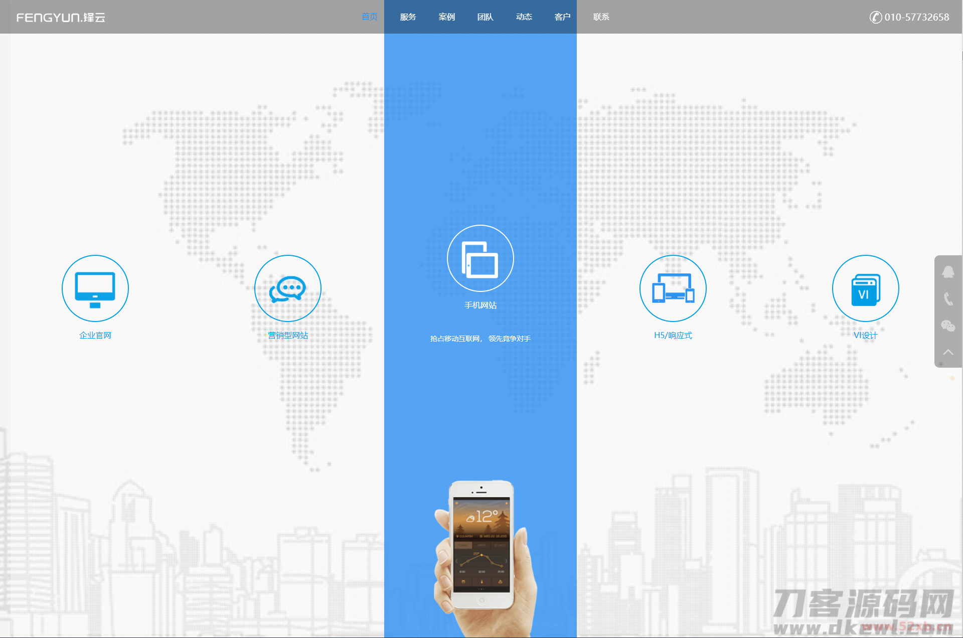 首屏是如下图效果,全屏大图风格,然后中间的文字有多种自动变化效果。很多效果截图演示不清楚。
