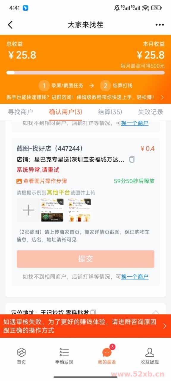 原理很简单,就是帮饿了么平台寻找优质商户,方便平台进行对接。通过做平台的任务,我们可以获得一定的佣金。与拍照任务不同,这个不用出门,在家就能做,工作内容就是去其它外卖平台截图或者录屏,花不了几分钟,然后提交审核即可。目前一单的话最低2块,视频盲盒是3-10块不等