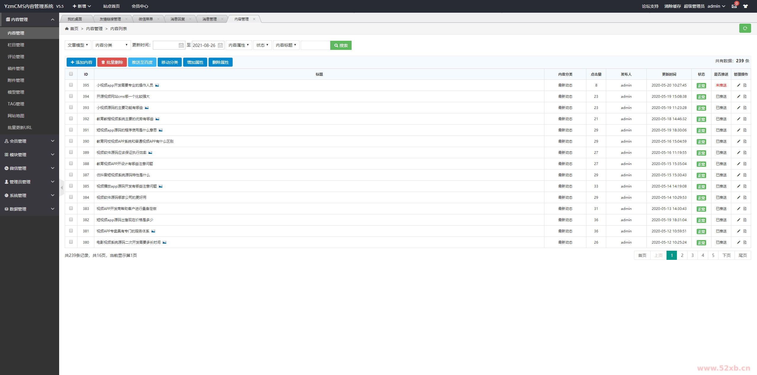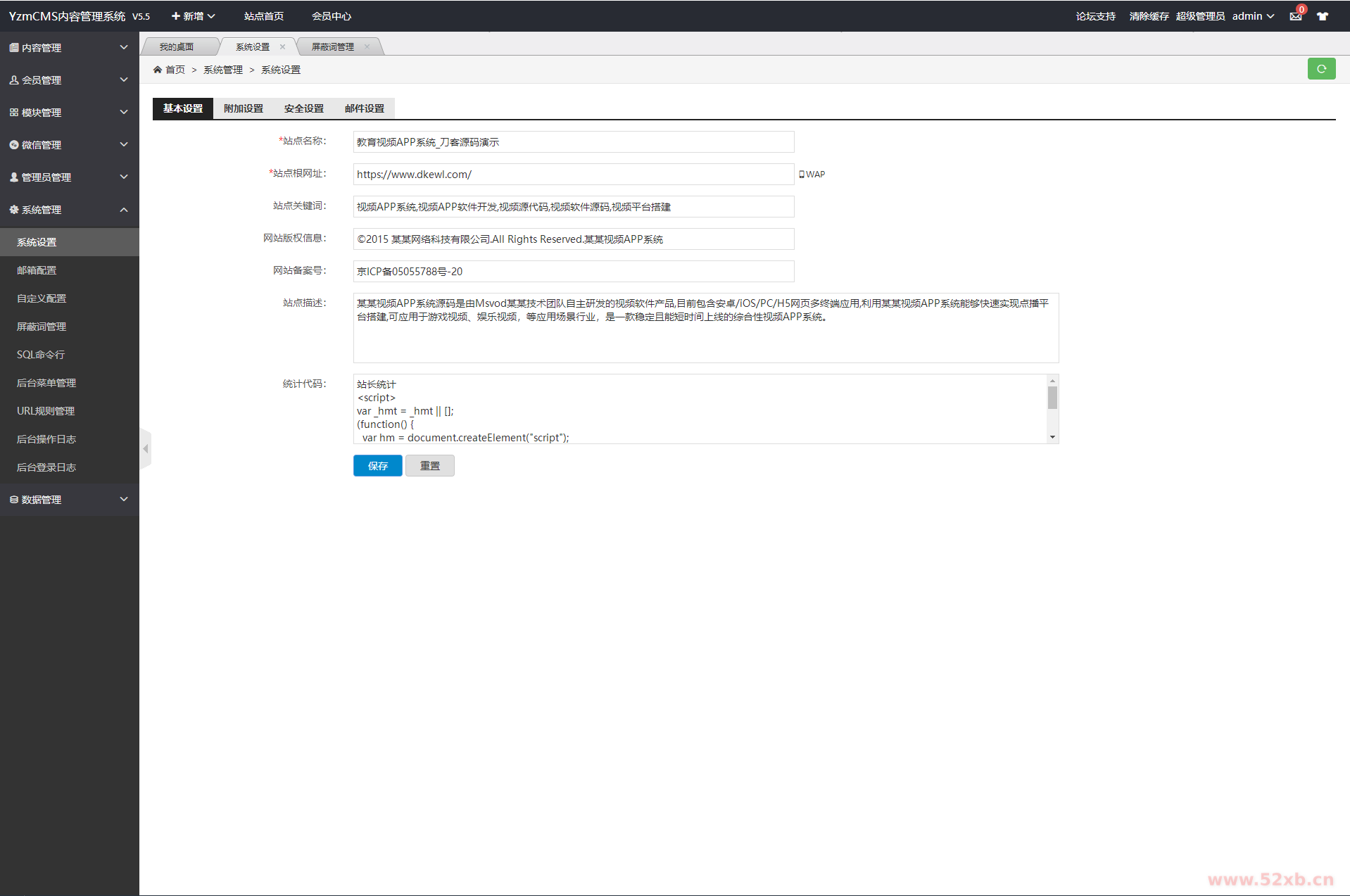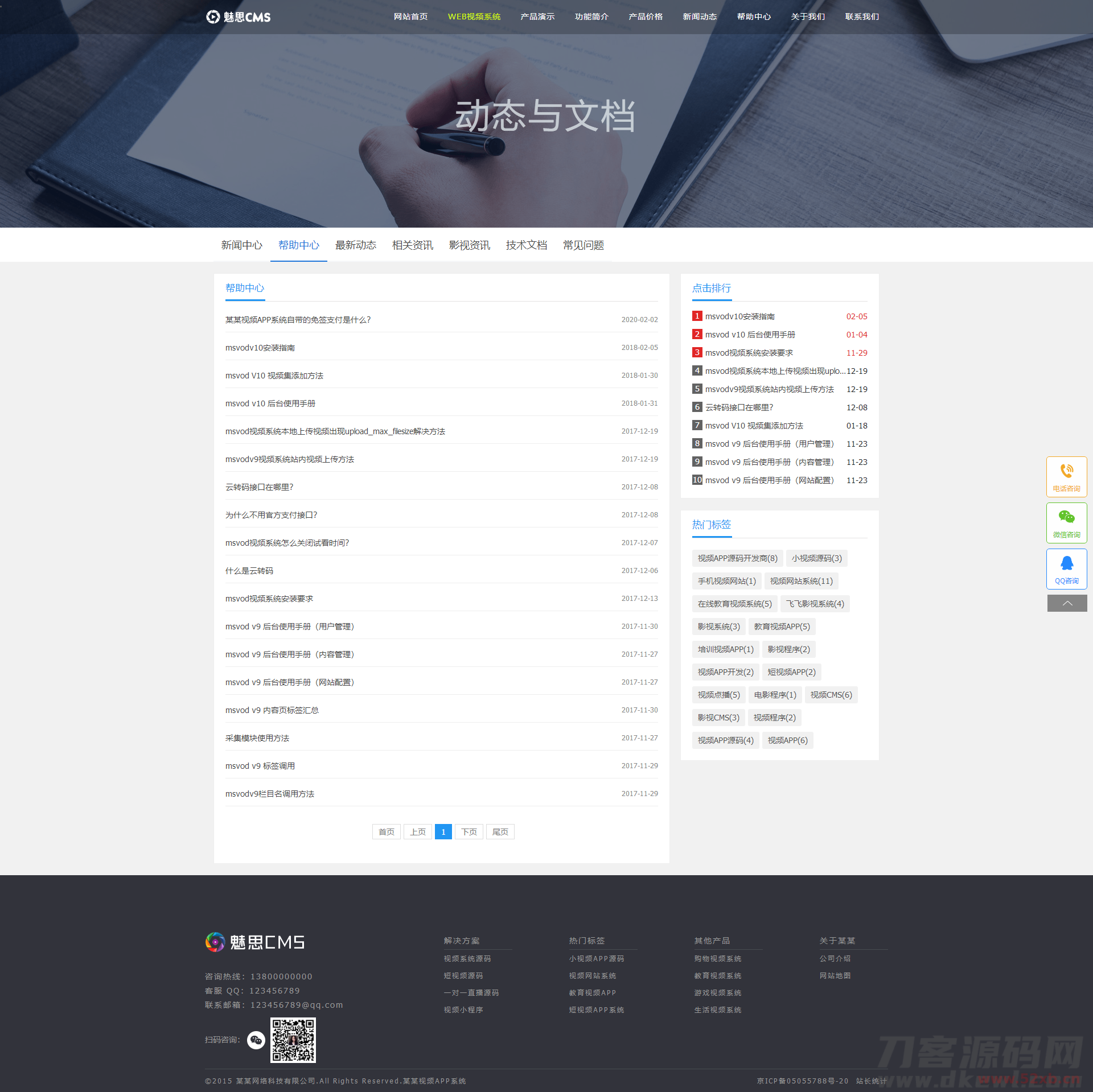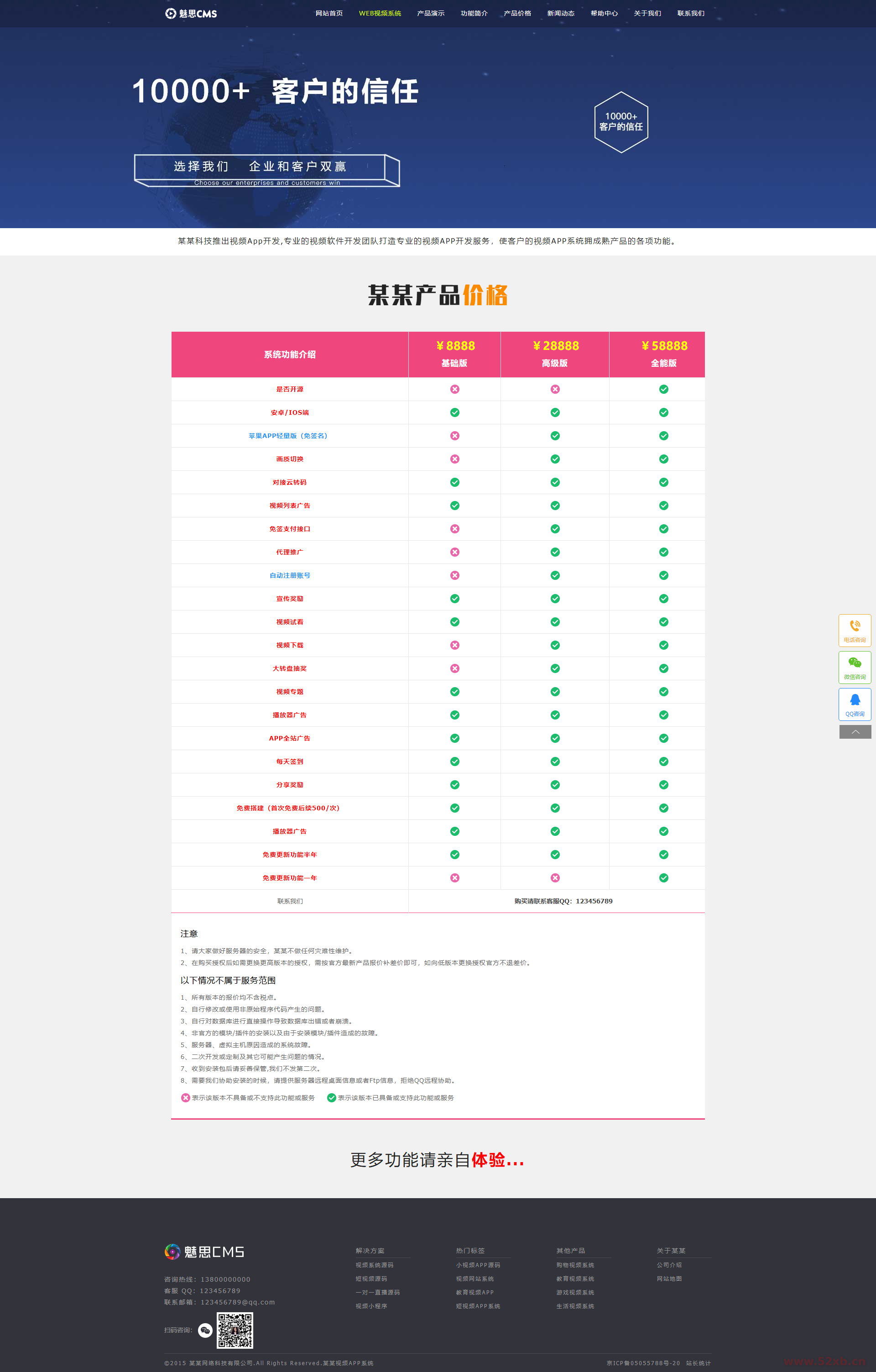 视频软件官网大气简洁,后台附带功能多,可以自定义在后台修改信息,上传内容