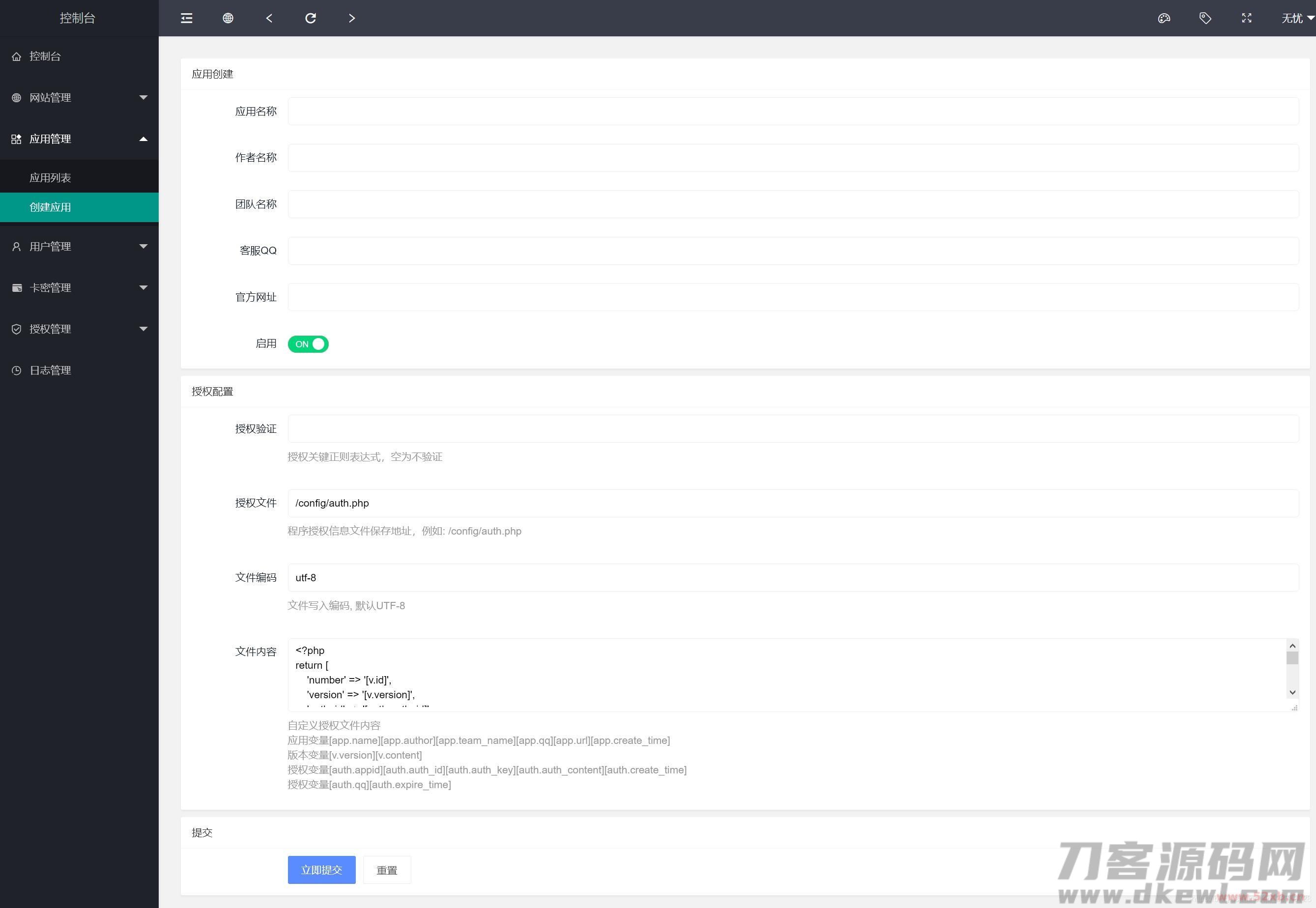 支持卡密生成授权;