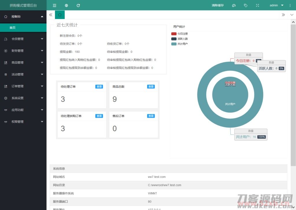 用户:admin 密码:123456