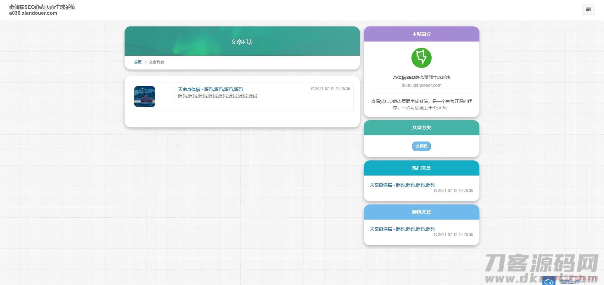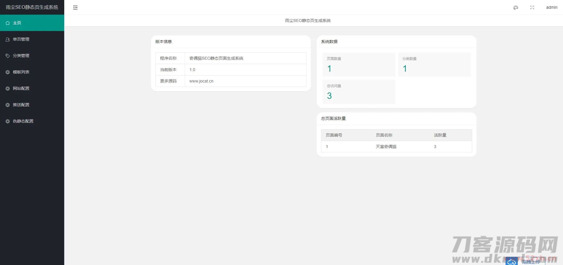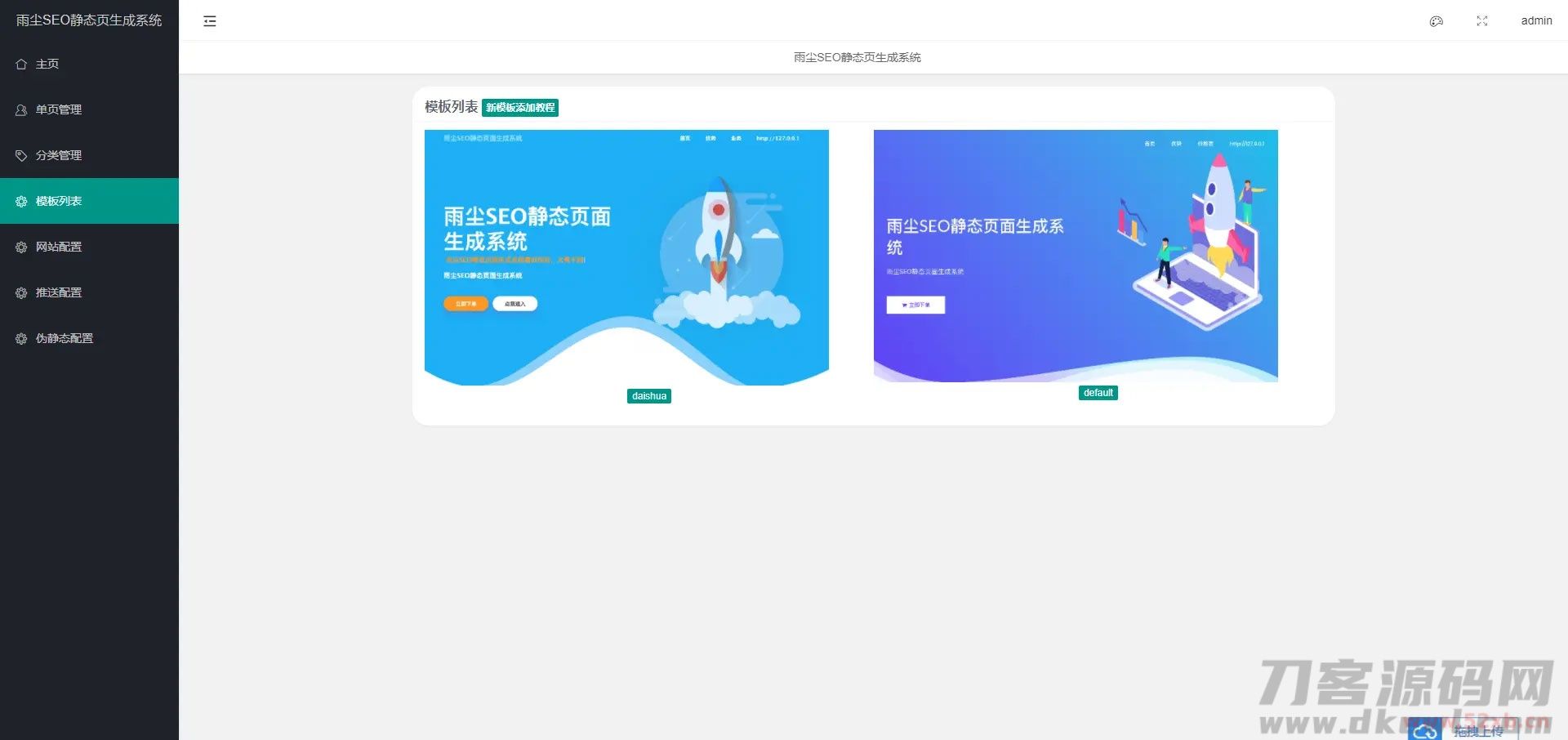 一款随机静态页面生成系统,一秒钟可生成上千条单页面,批量生成单页用来做SEO是非常不错的源码。雨尘SEO静态页面生成系统源码v1.3版本,支持文章采集,功能,多模板选择批量生成单页,本次更新增了百度自动推送和网站地图sitemap功能。