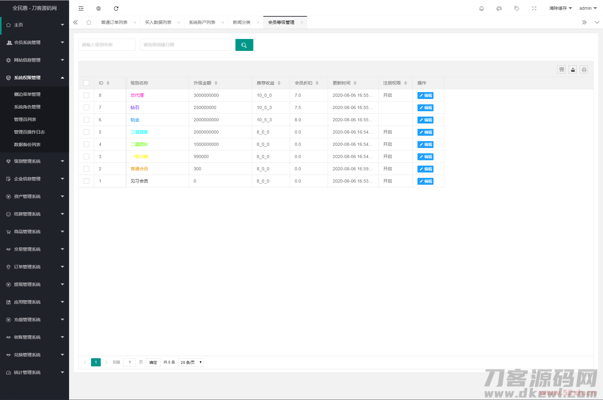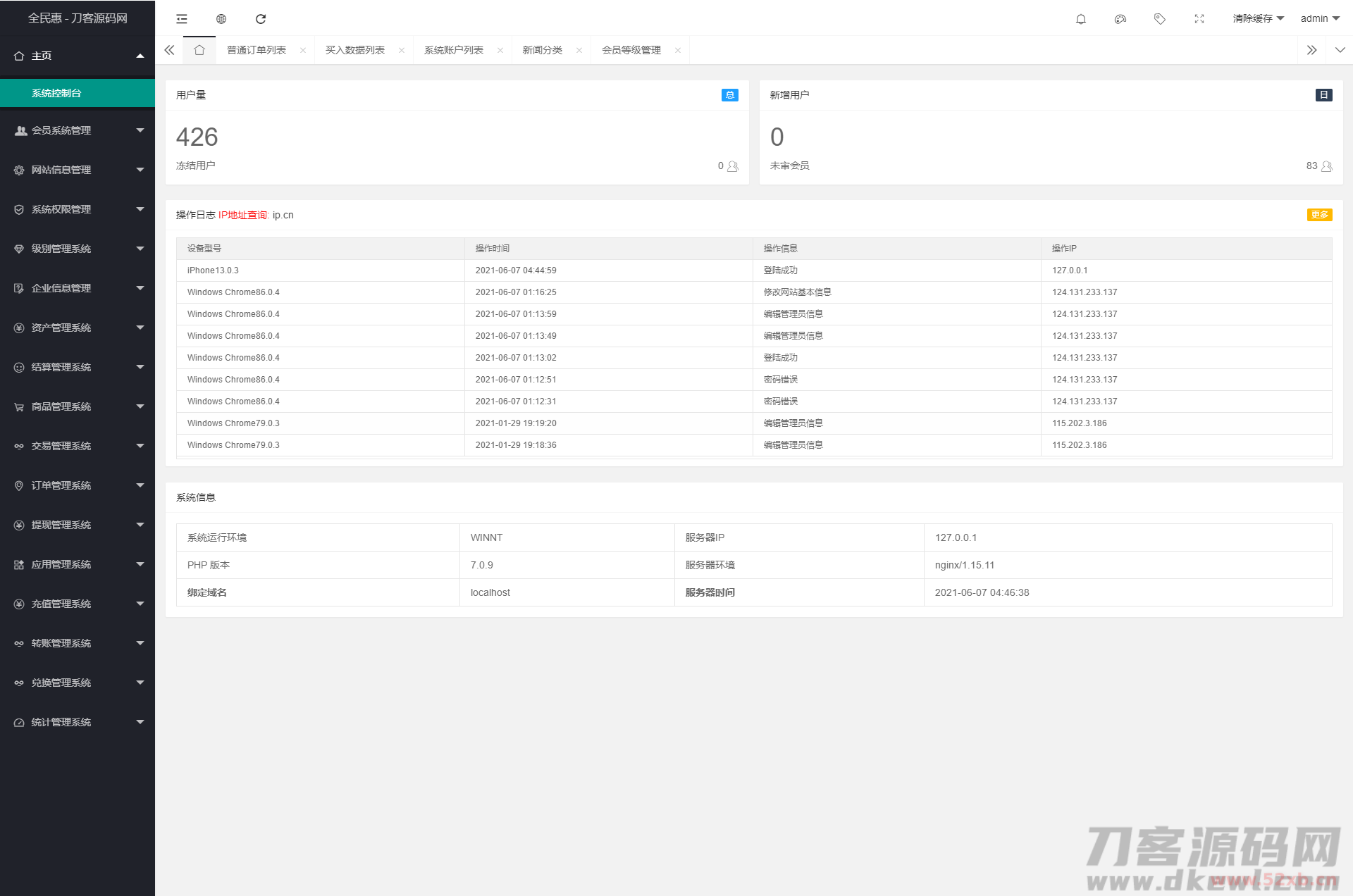 后台登录地址 域名/admin.php 账号admin 密码 123456