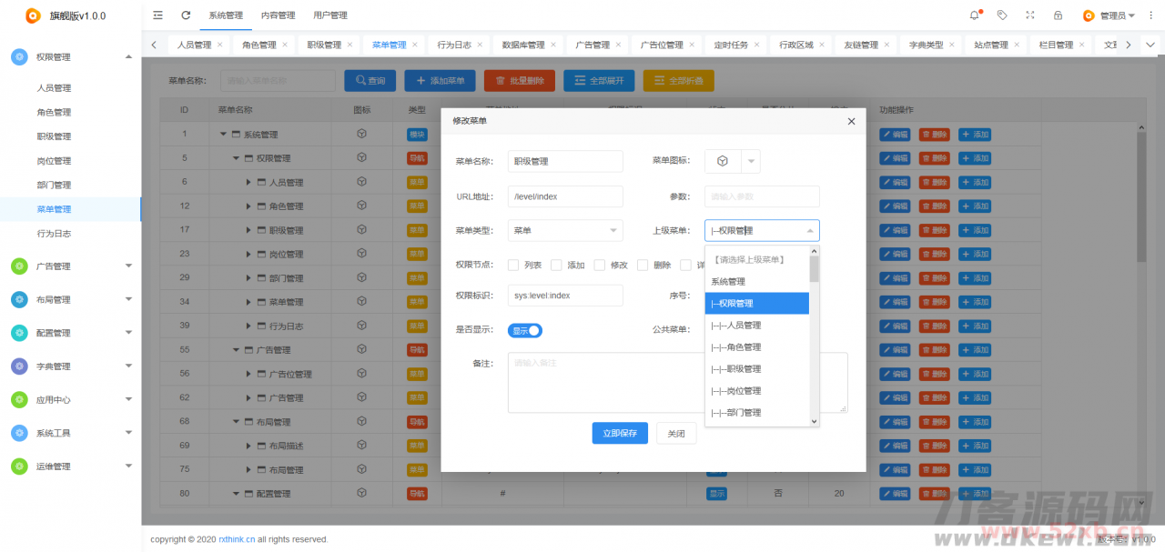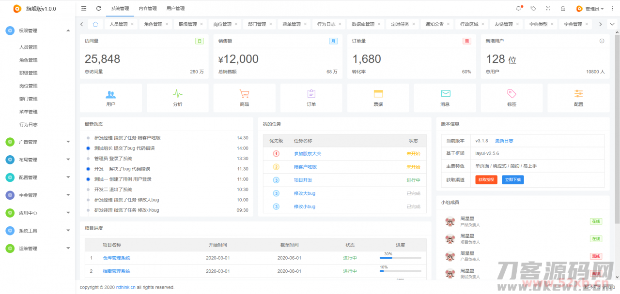 RXThinkCMF_TP6_PRO旗舰版是一个基于thinkphp6 + layui2.5.6开发权限(RBAC)及内容管理框架,框架中集成了权限管理、模块管理、插件管理、钩子管理、数据库管理、富文本编辑器(已集成ueditor,kindeditor),后台支持多主题切换、布局管理、广告管理、配置管理、字典管理、切图管理、CMS内容管理等常用功能模块,以方便开发者快速构建自己的应用。RXThinkCMF_TP6_PRO框架专注于为中小企业提供最佳的行业基础后台框架解决方案,执行效率、扩展性、稳定性值得信赖,操作体验流畅,使用非常优化,欢迎大家使用及进行二次开发。