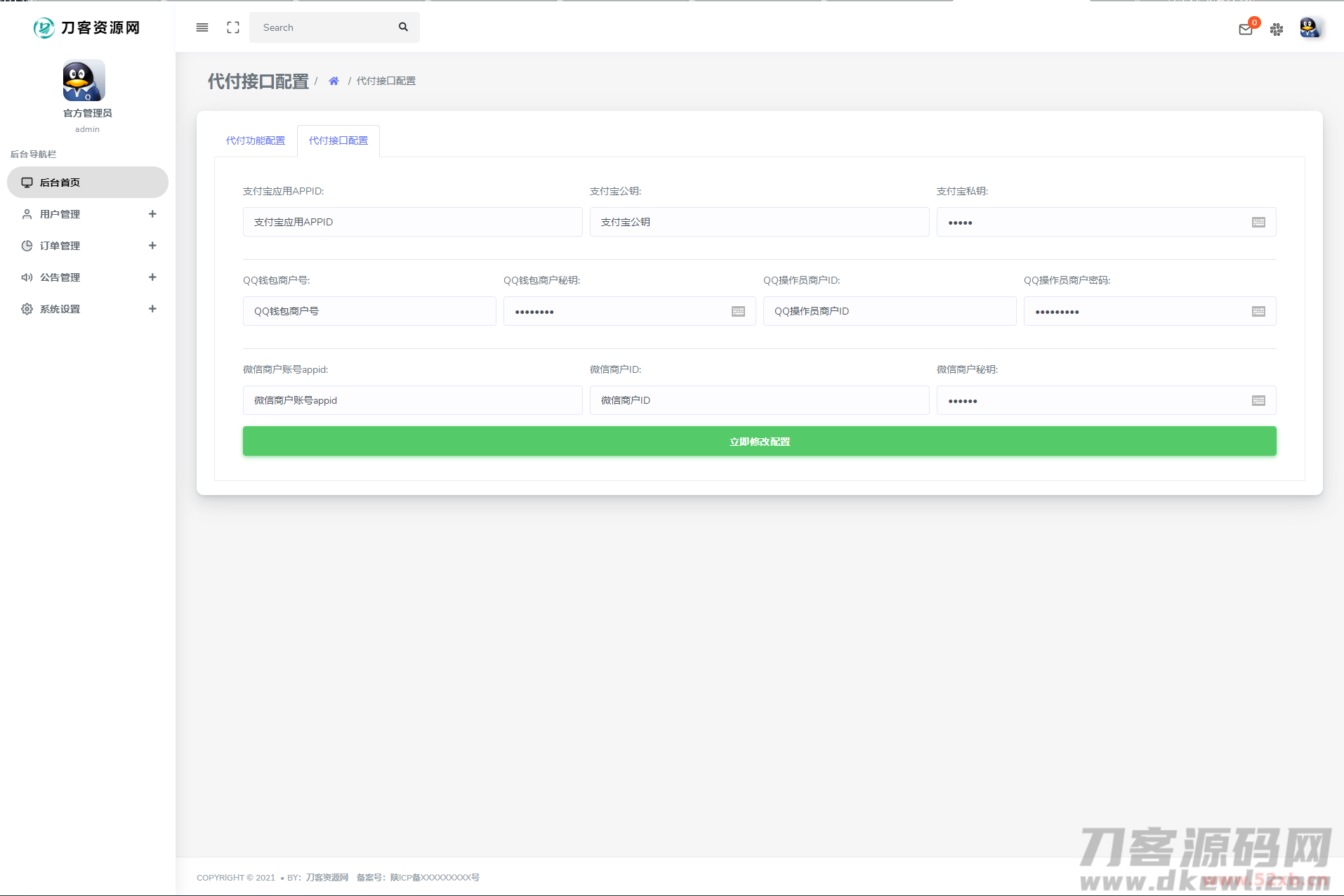 1、支持支付宝、微信、QQ三网代付接口 2、可开启汇款
