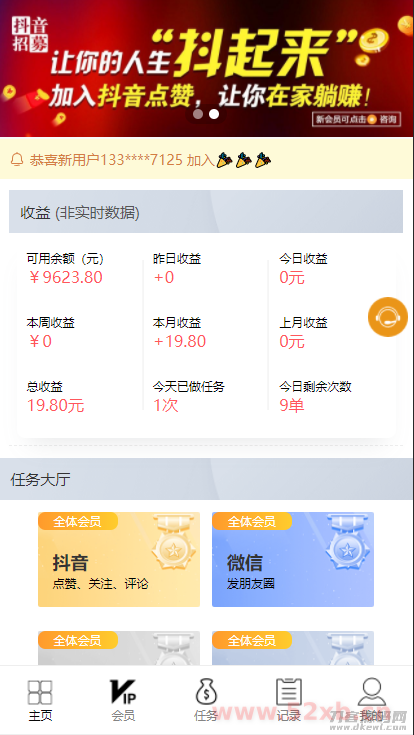 【抖音短视频点赞任务系统】新版+大转盘机器人全新UI微信爱点赞悬赏众人帮爱分享赚钱平台