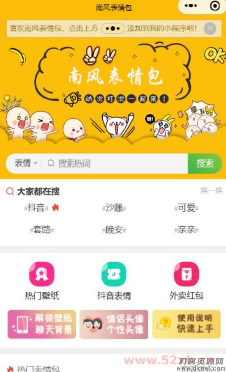 6.小程序的功能:表情包+壁纸+外卖+流量主+采集+后台上传表情包功能,全面启动,带后台