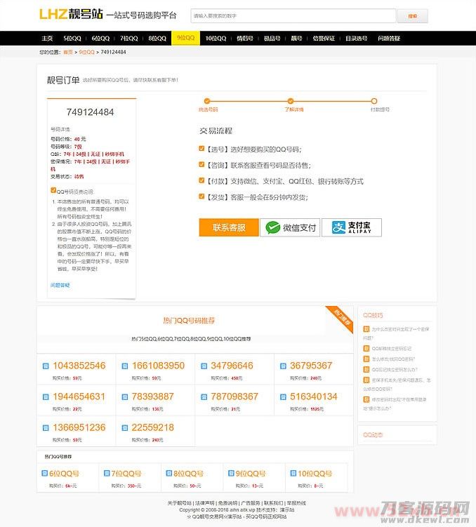 QQ号码/手机号交易平台,QQ靓号买卖网站源码,网络账号在线发布交易平台整站源码!适用于各种靓号在线选号交易平台!