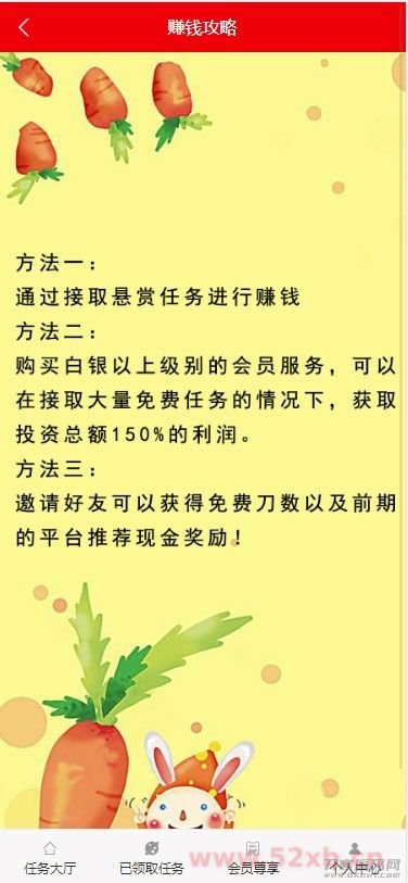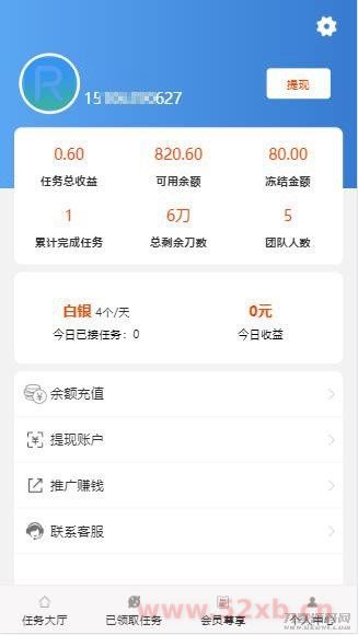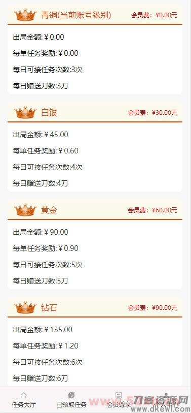 程序为thinkphp3.23框架。发布任务付费开通权限,支持等级购买,不同等级可以设置返佣和领取任务数。支持会员等级购买,三级返佣。