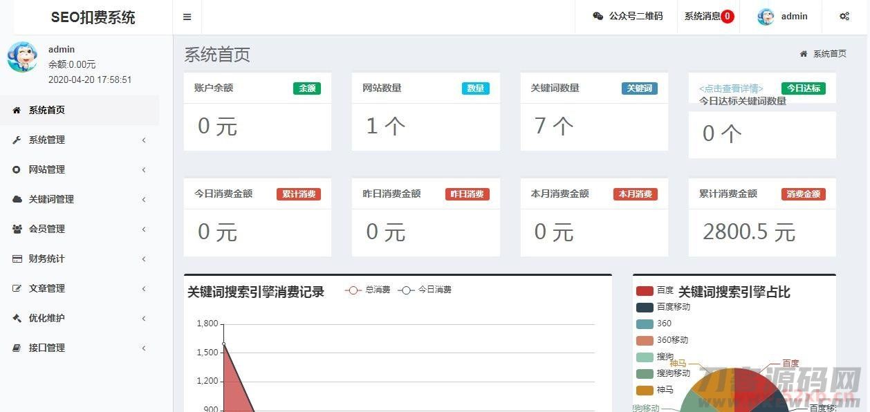 9. 利润分析,利润统计,各个搜索引擎关键词的达标数量,最近7日达标数量,折线图和柱状图展示,方便你查看!
