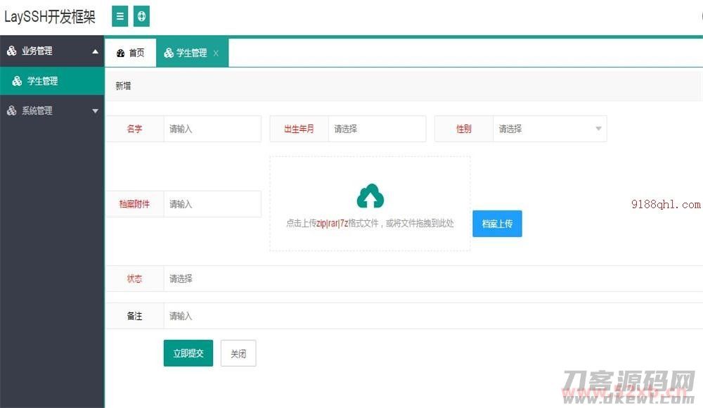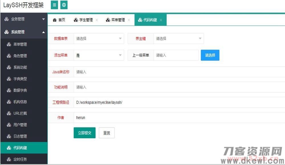 基于layui+SpringMVC+Spring+Hibernate+Mysql搭建而成,内置代码生成器,能够快速生成增删改查代码,节省开发时间,快速构建企业级的web应用系统。 该框架具备一整套完整的权限管理系统,代码简洁,容易入门,适合开发者研究学习。