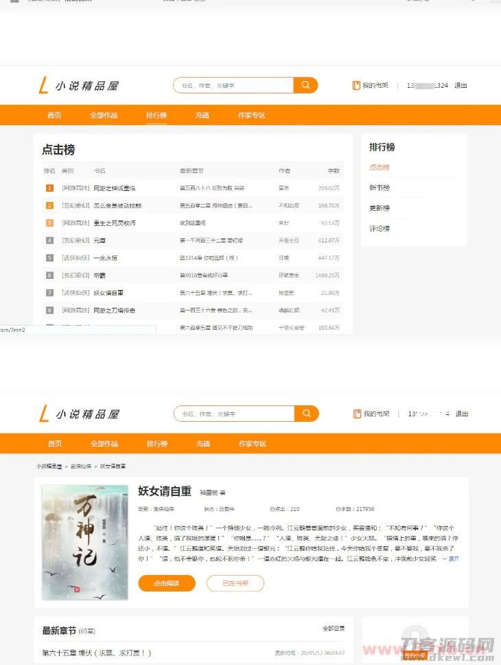 java橙色风格小说精品屋小说网站源码 带支付+作者中心+自动采集