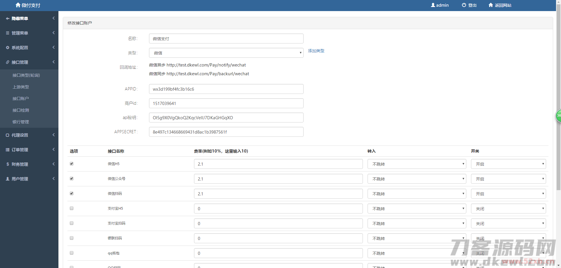 支持轮询,支持防封域名跳转,支持支付宝分账,支持代理,支持认证进件,支持接口检测,其他的自己看吧。我自己也讲不完了