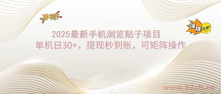 2025手机浏览帖子单机日30+,提现秒到账,可矩阵操作,