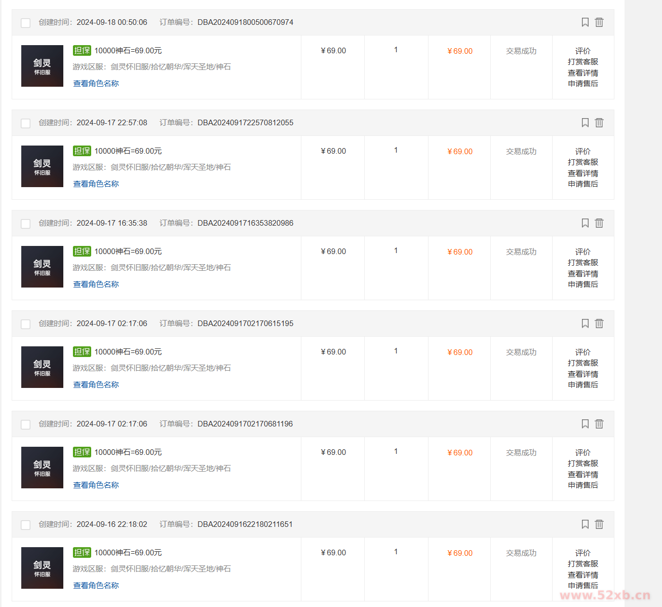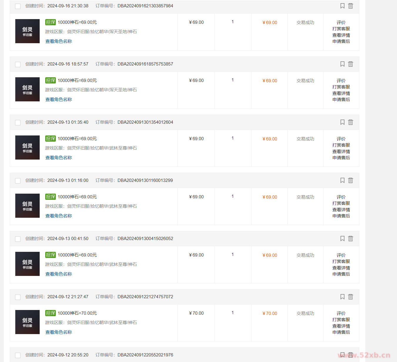 以下售卖记录都是我最近卖的 大家可以看看 日期也是最近的