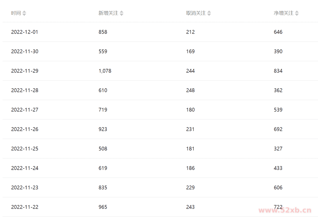 以阿水自己为例,目前全网50W+粉丝,这是每天的涨粉数据,我最近没有刻意引流,仅仅靠着以前在其他平台发布后的长尾流量,每天都能有将近1000+的新增关注,除去取关的,平均保底也有500+。