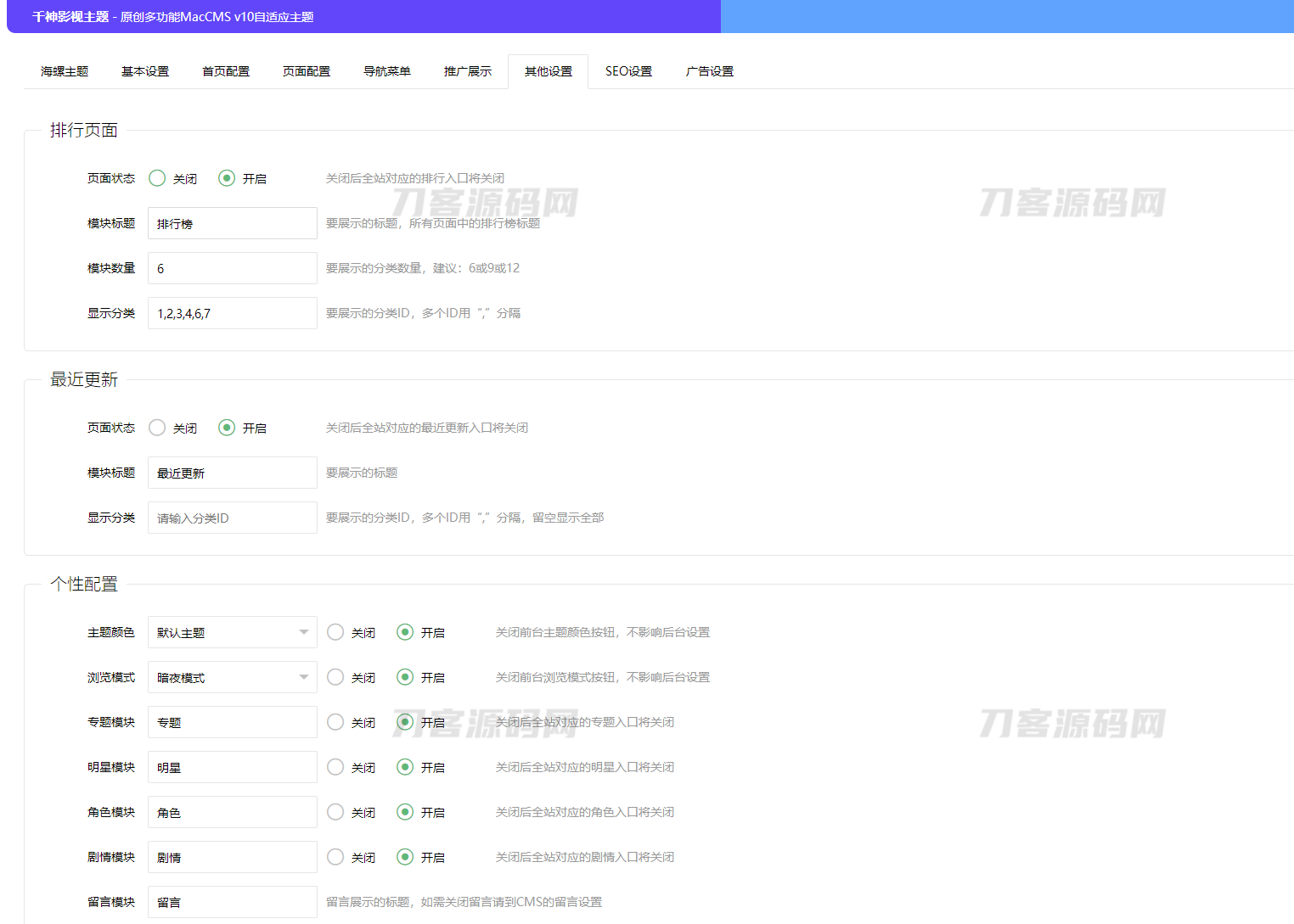 后台点开自定义菜单配置 在最下方添加:主题设置,/admin.php/admin/conch/theme