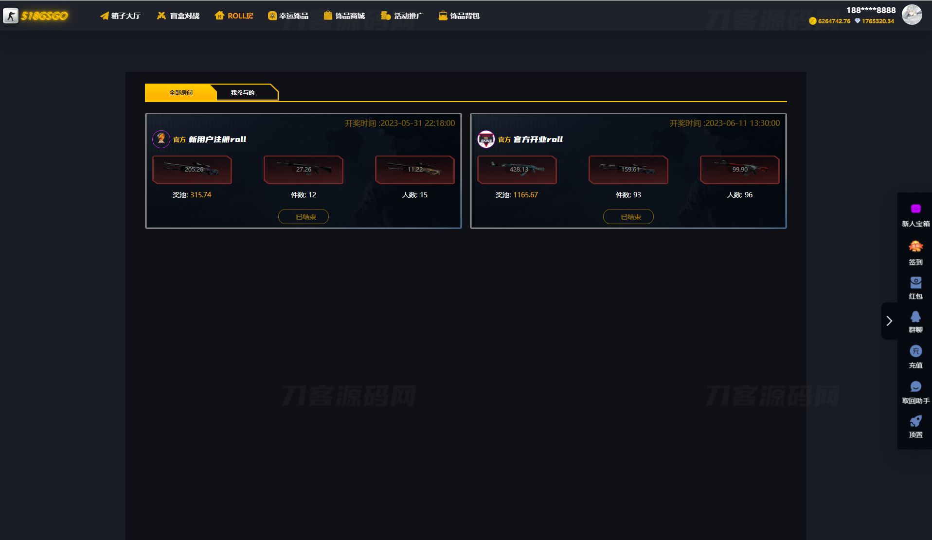 CSGO游戏盲盒开箱源码 盲盒对战、幸运开箱、积分商城、Fl盲盒