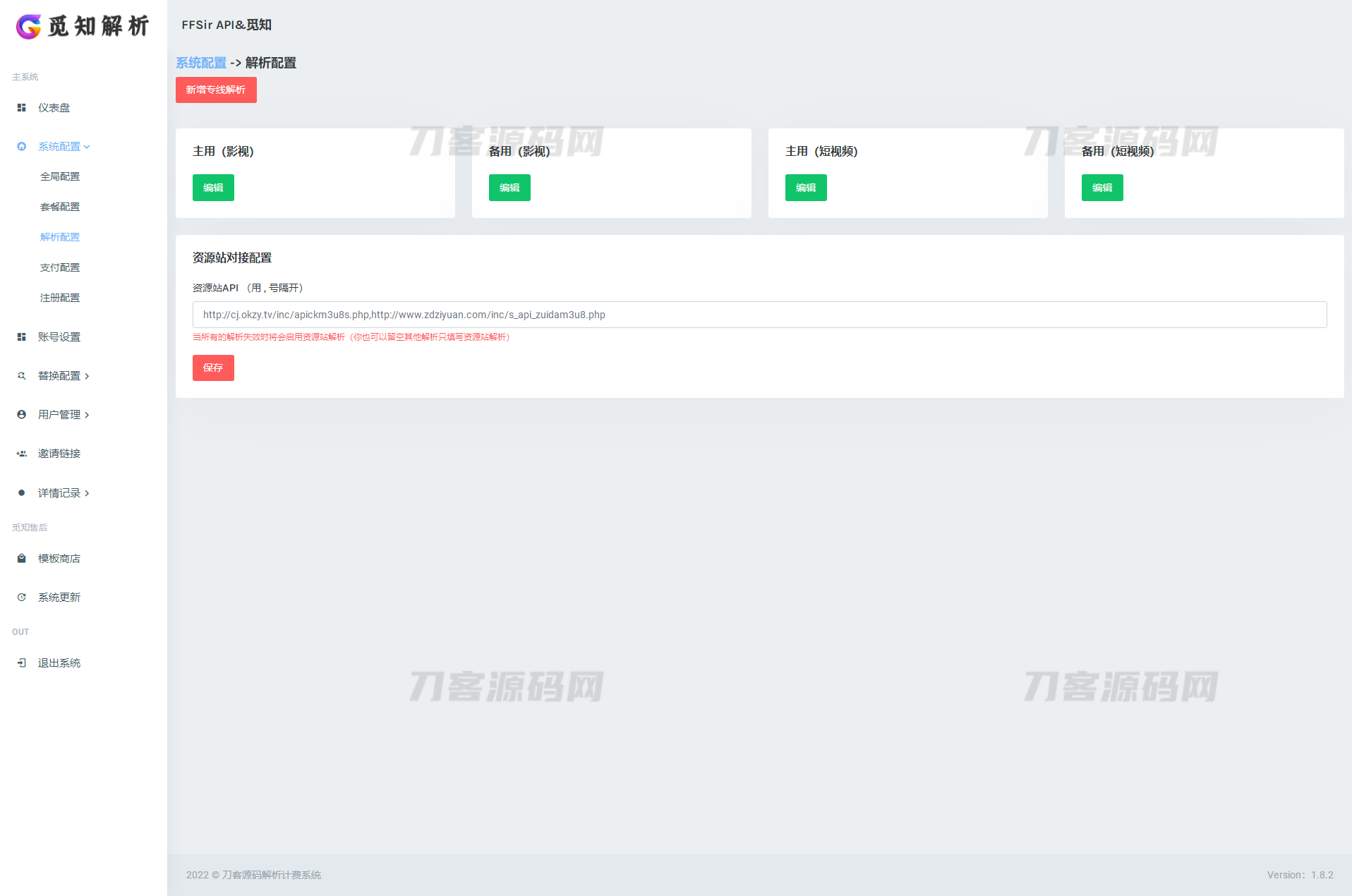 后台可对接多个专用json 接口解析,可以 m3u8 资源站对接配置当所有的解析失效时将会启用资源站解析(你也可以留空其他解析只填写资源站解析)