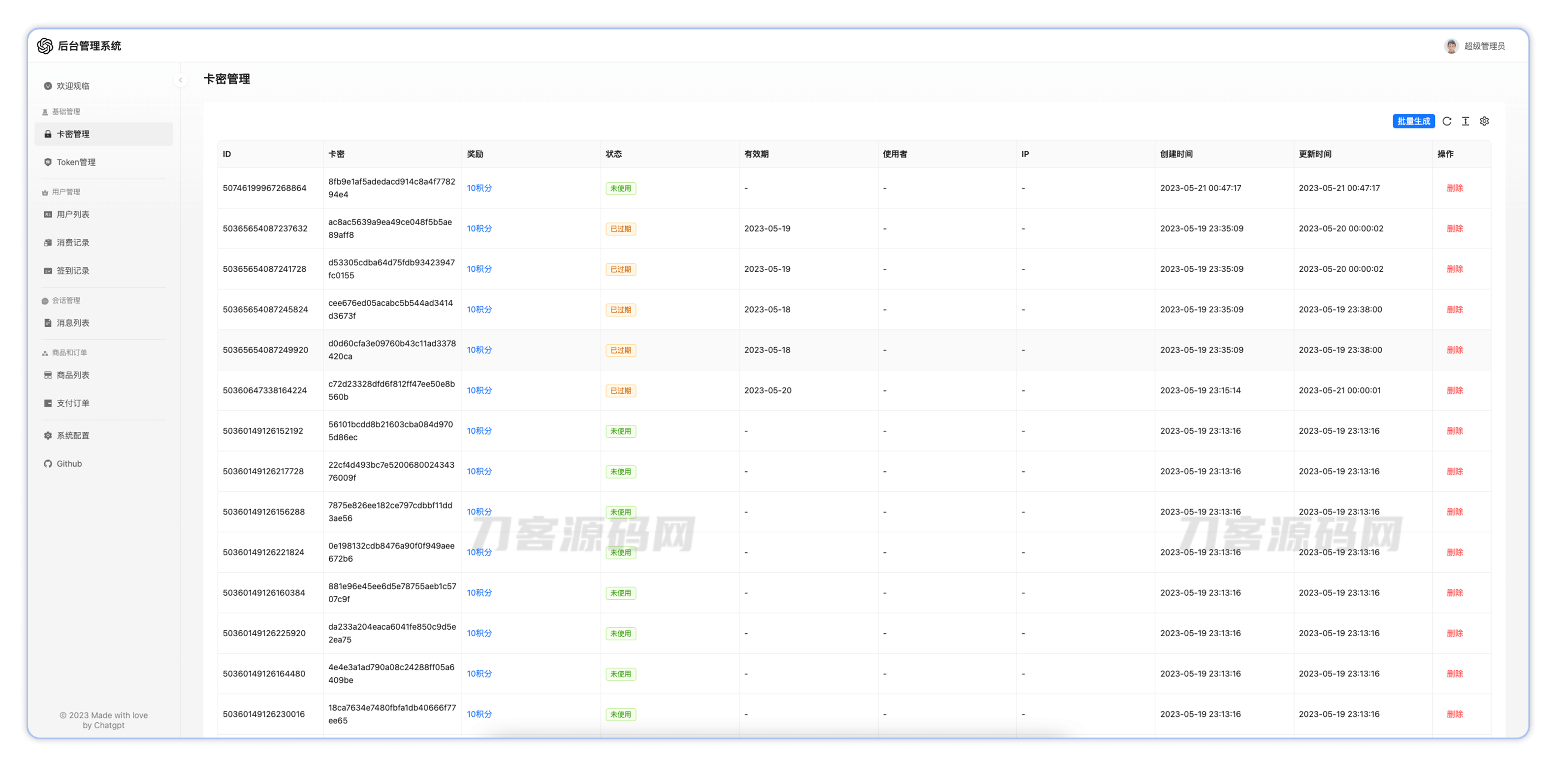 后台管理系统,可对用户,Token,商品,卡密等进行管理