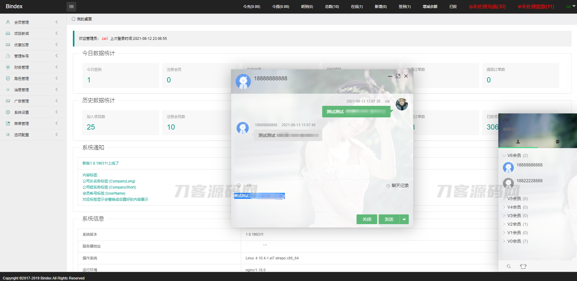 新功能:在线客服、在线会员、优惠加息、券券赠送、虚拟币充值等功能