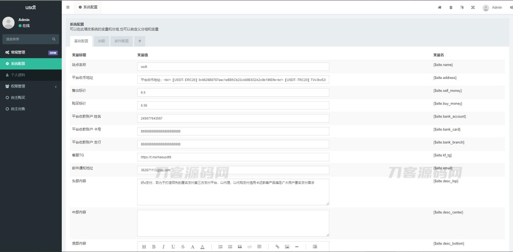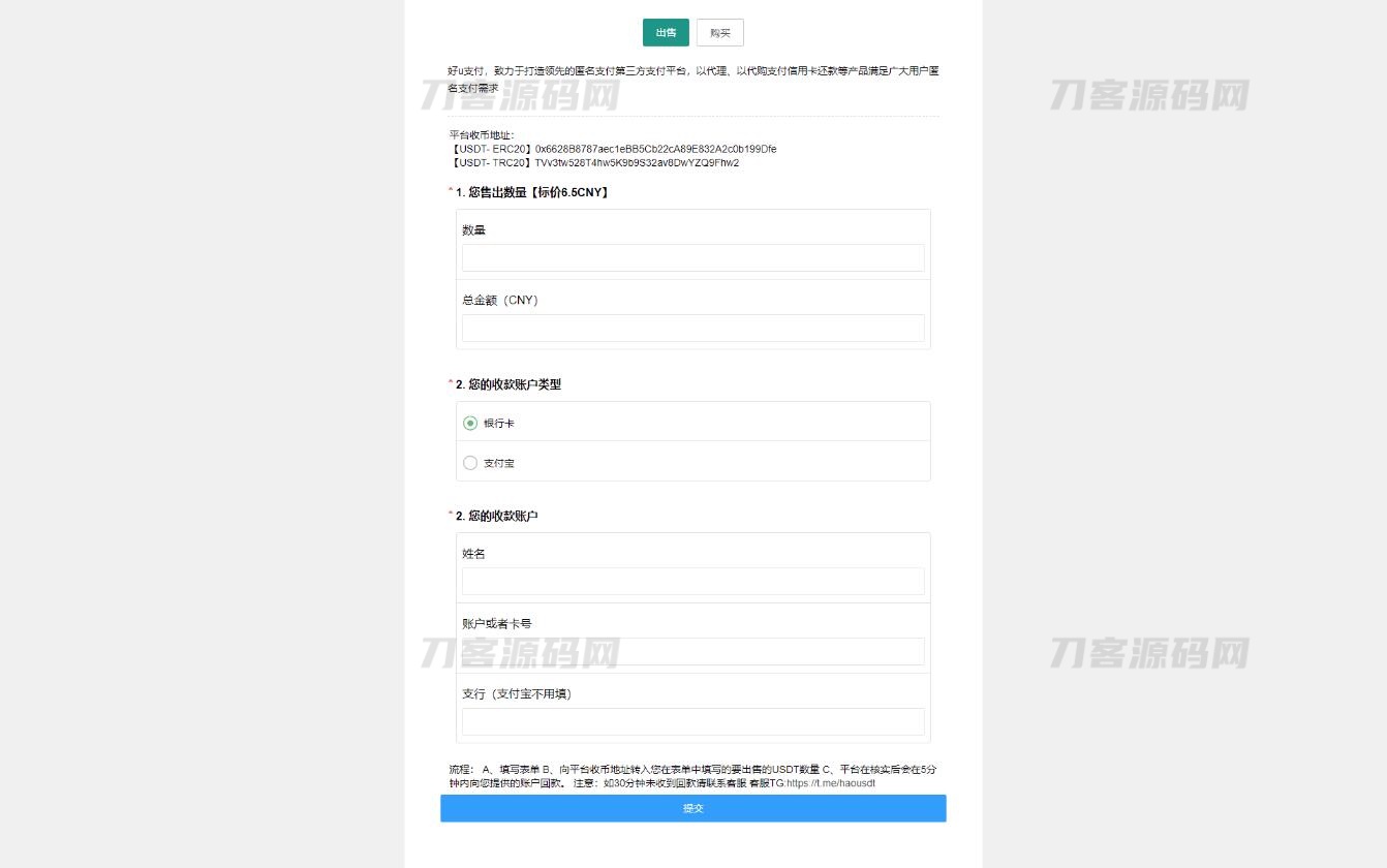 usdt出售购买价格根据后台配置数量不一样价格不一样。 前端输入内容提交后,后台会邮箱通知网站管理员处理订单。