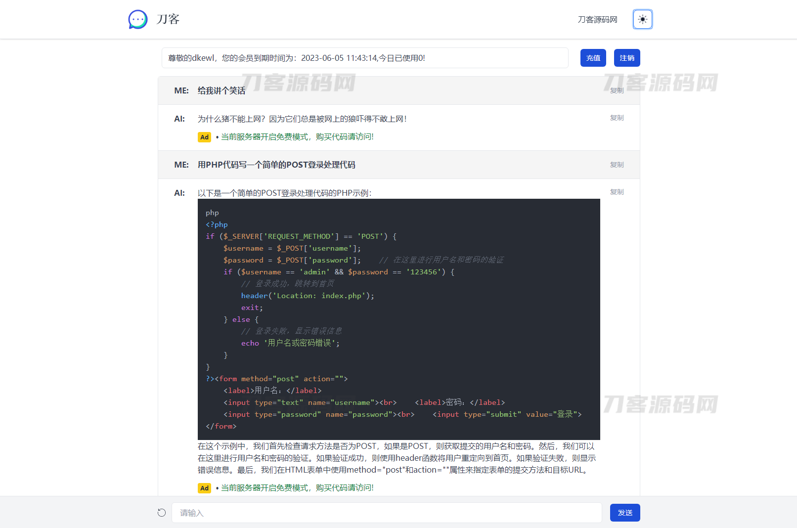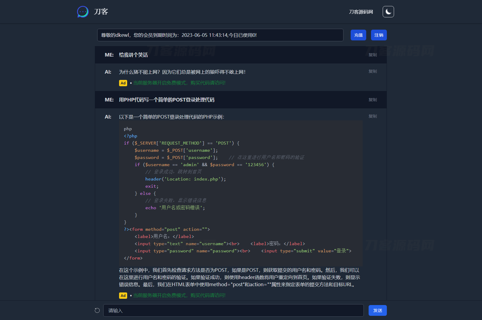 用是没问题的,支持暗黑模式,反应也是很快的,充值方面使用的是后台生成卡密方式,有能力的可以对接一下在线支付,这样就非常完美了
