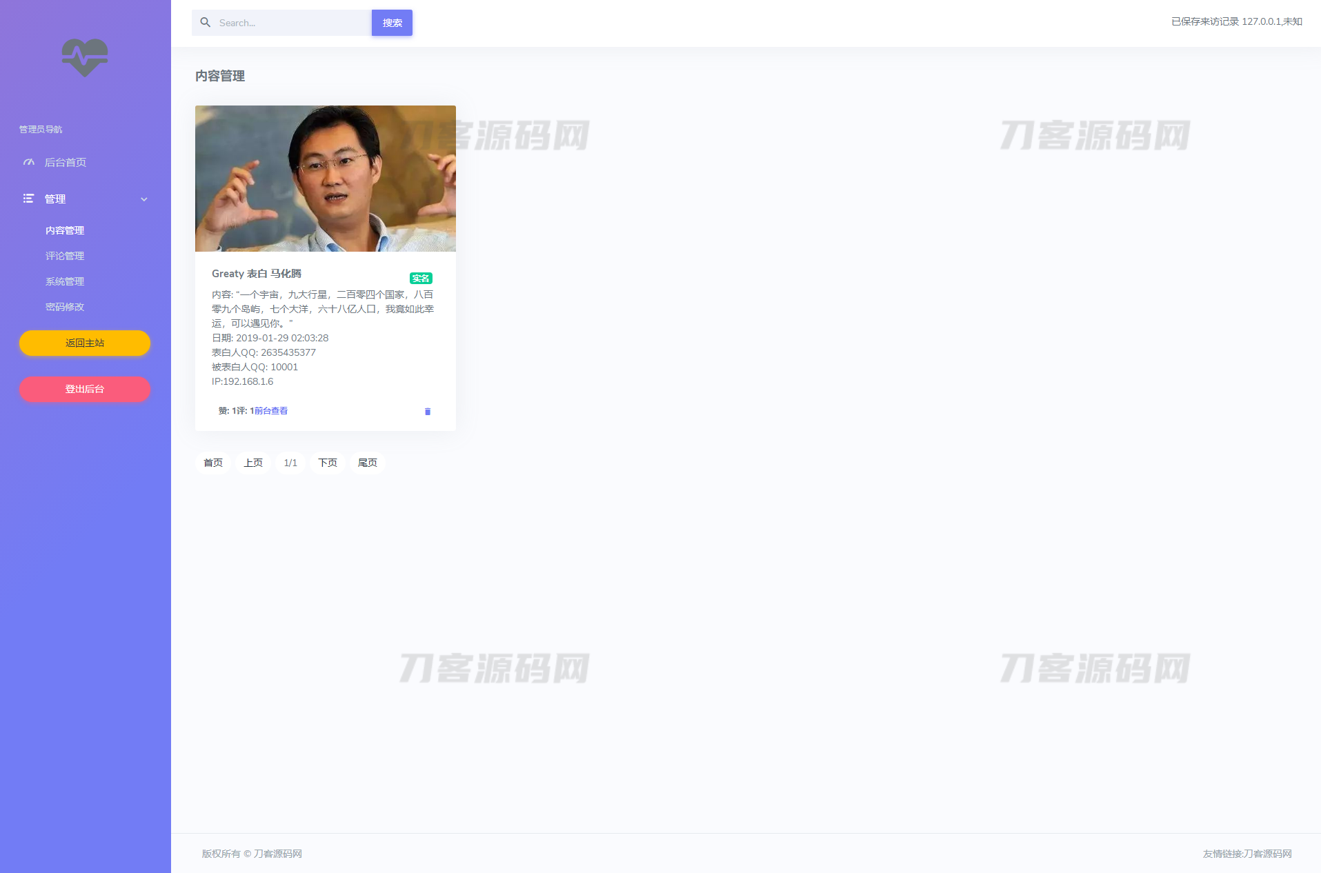 本系统为某位大佬的表白墙系统二开,嘎嘎简单,仅做了很简单的改变 改成了留言墙了