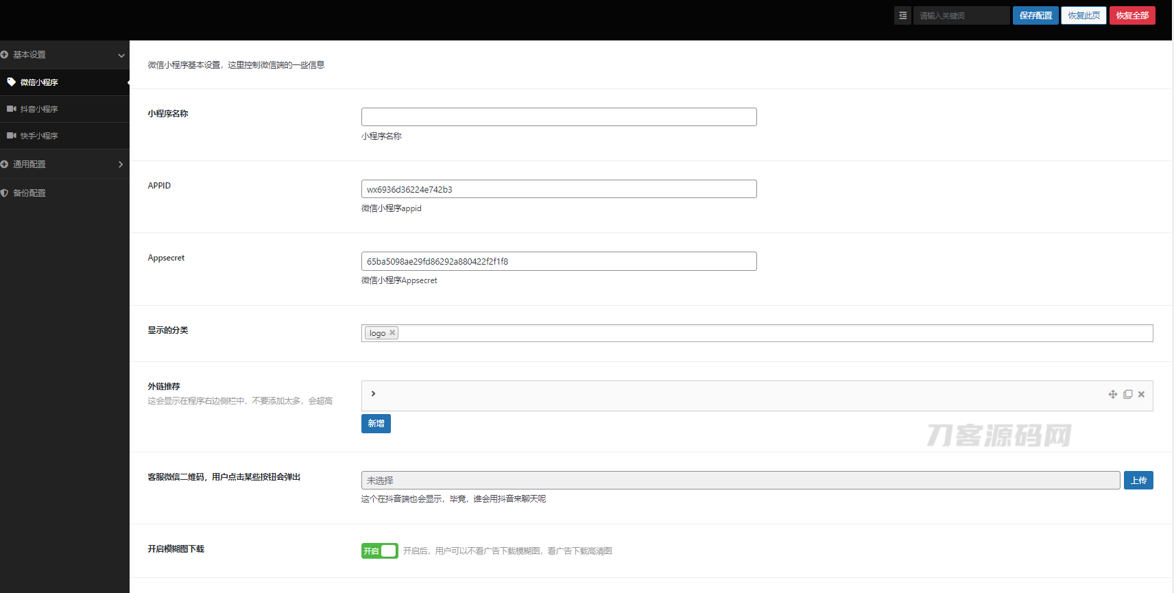 这是一款支持快手端,微信端,抖音三端的一个壁纸类型的小程序