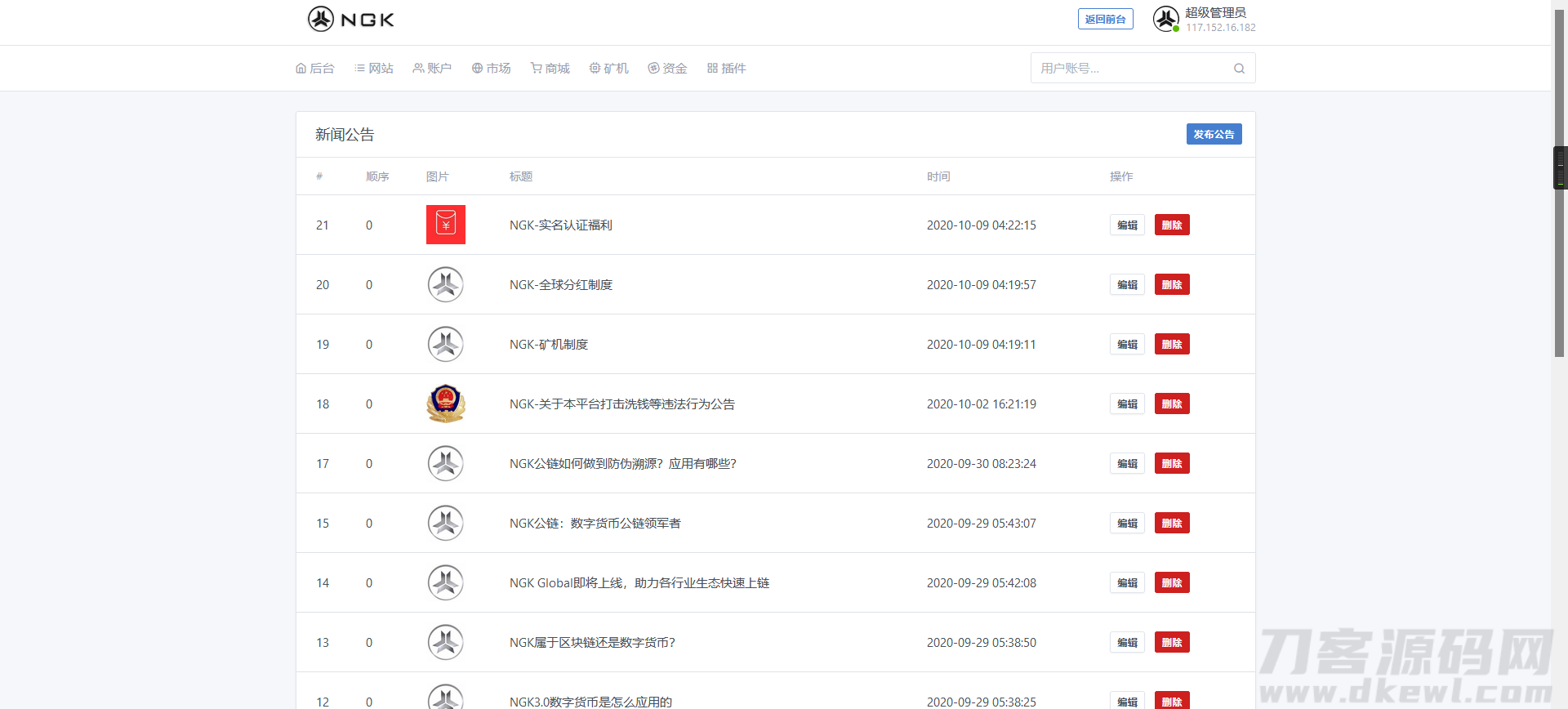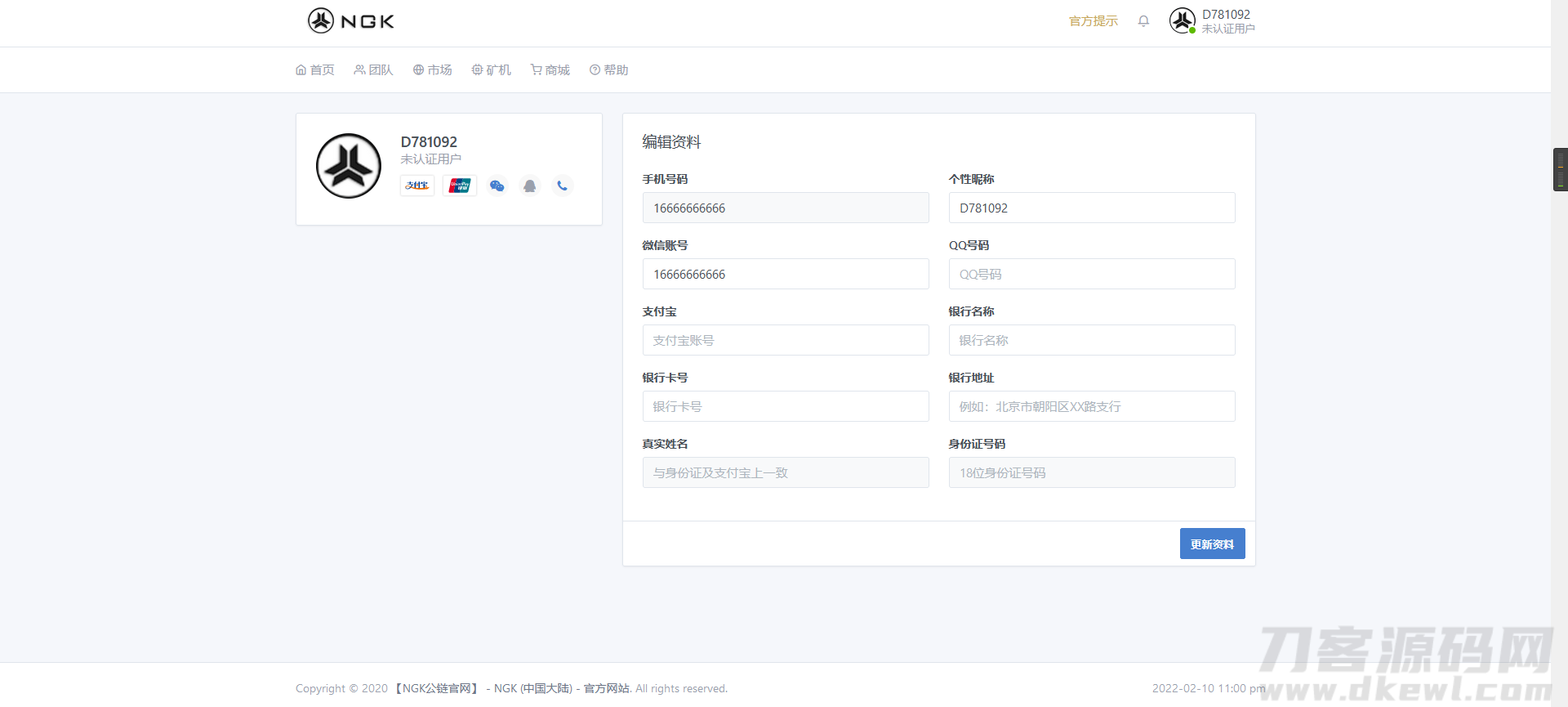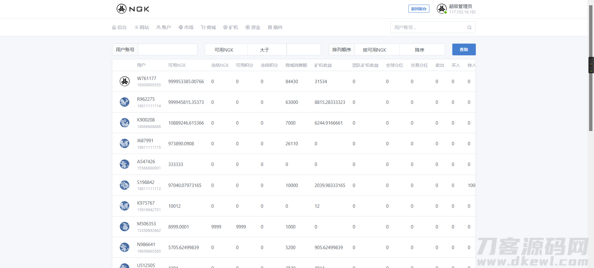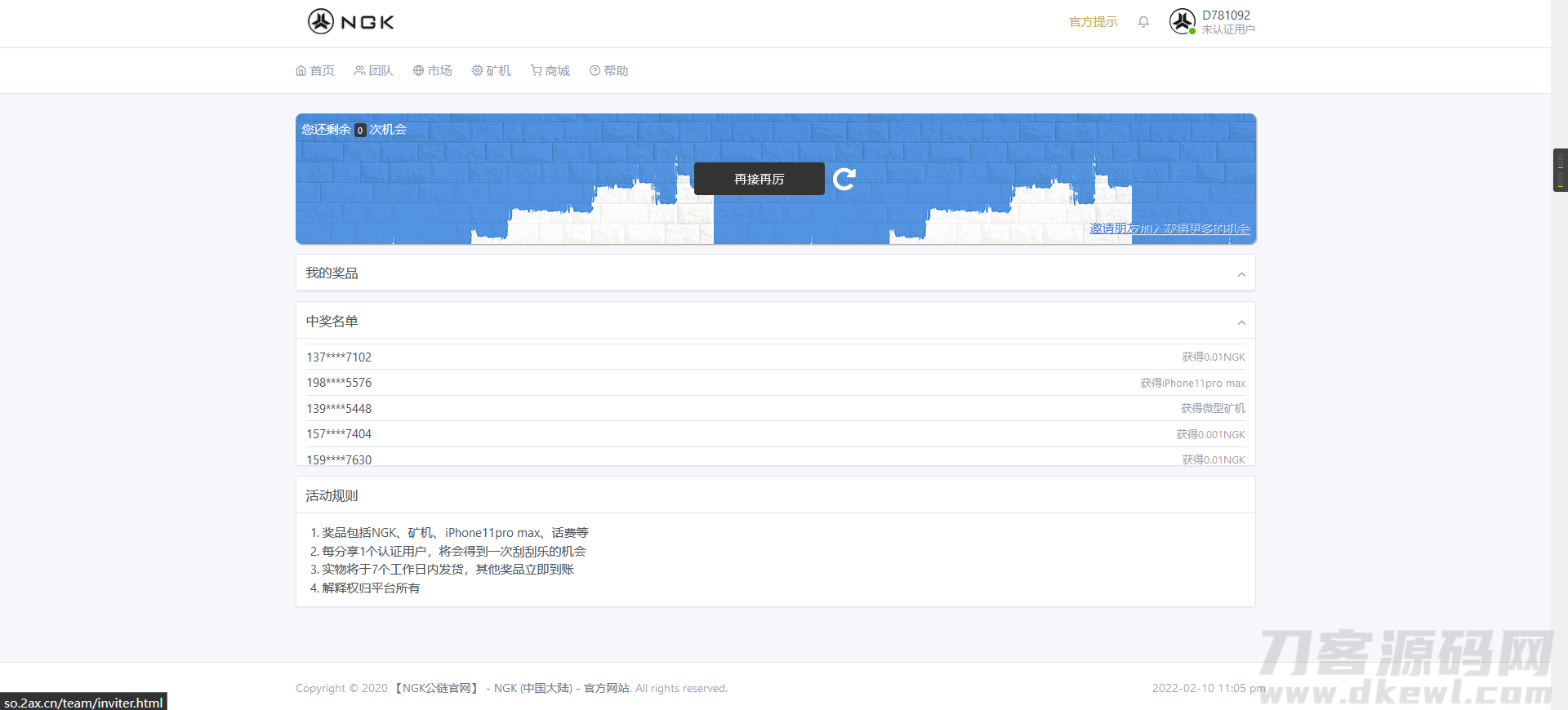 thinkphp6+mysql开发的NGK矿机区块链挖矿系统
