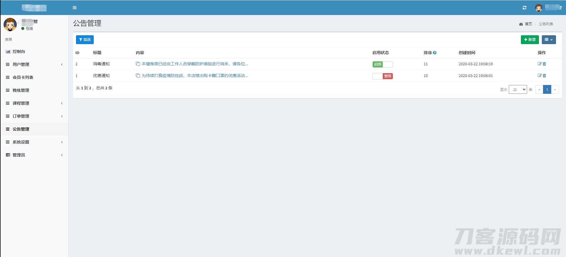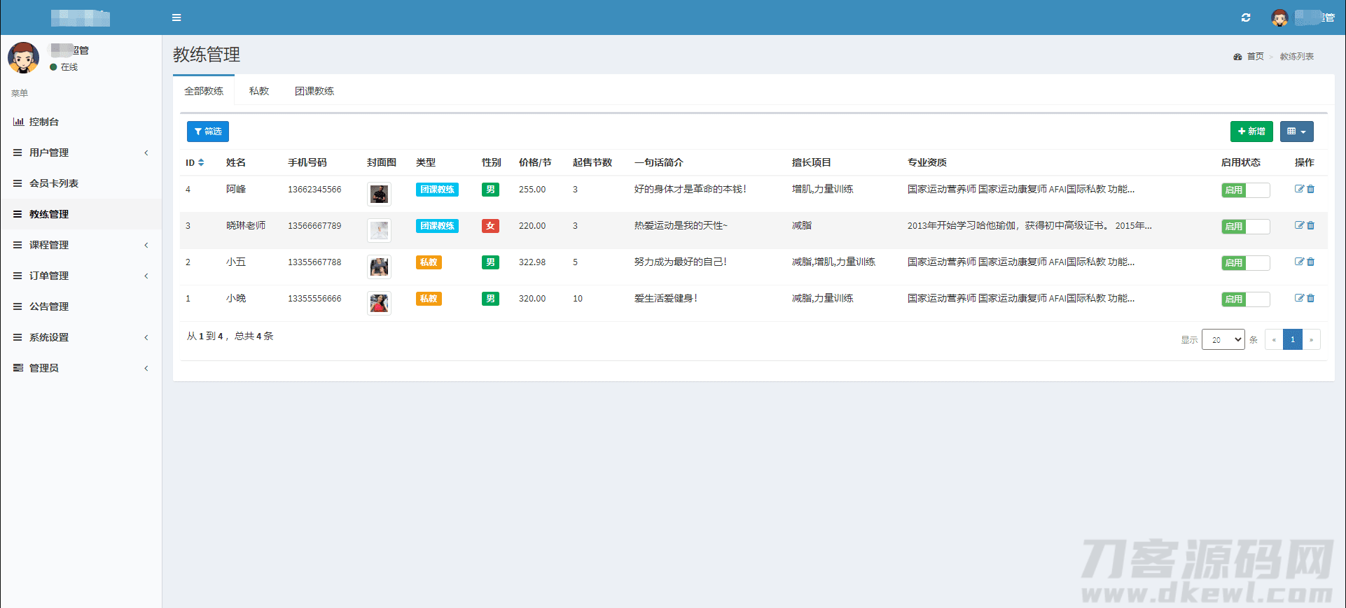 健身类小程序前后端源码